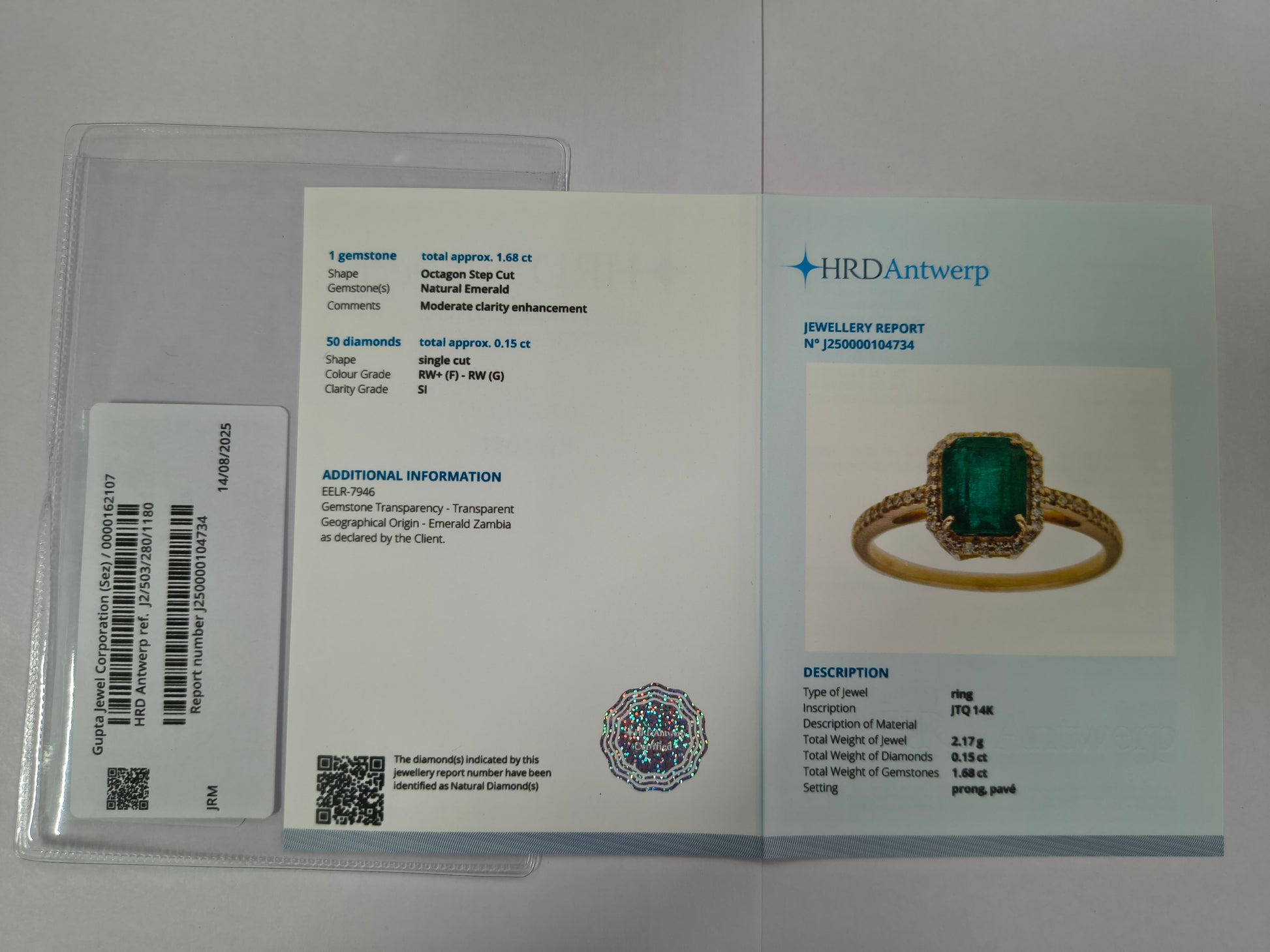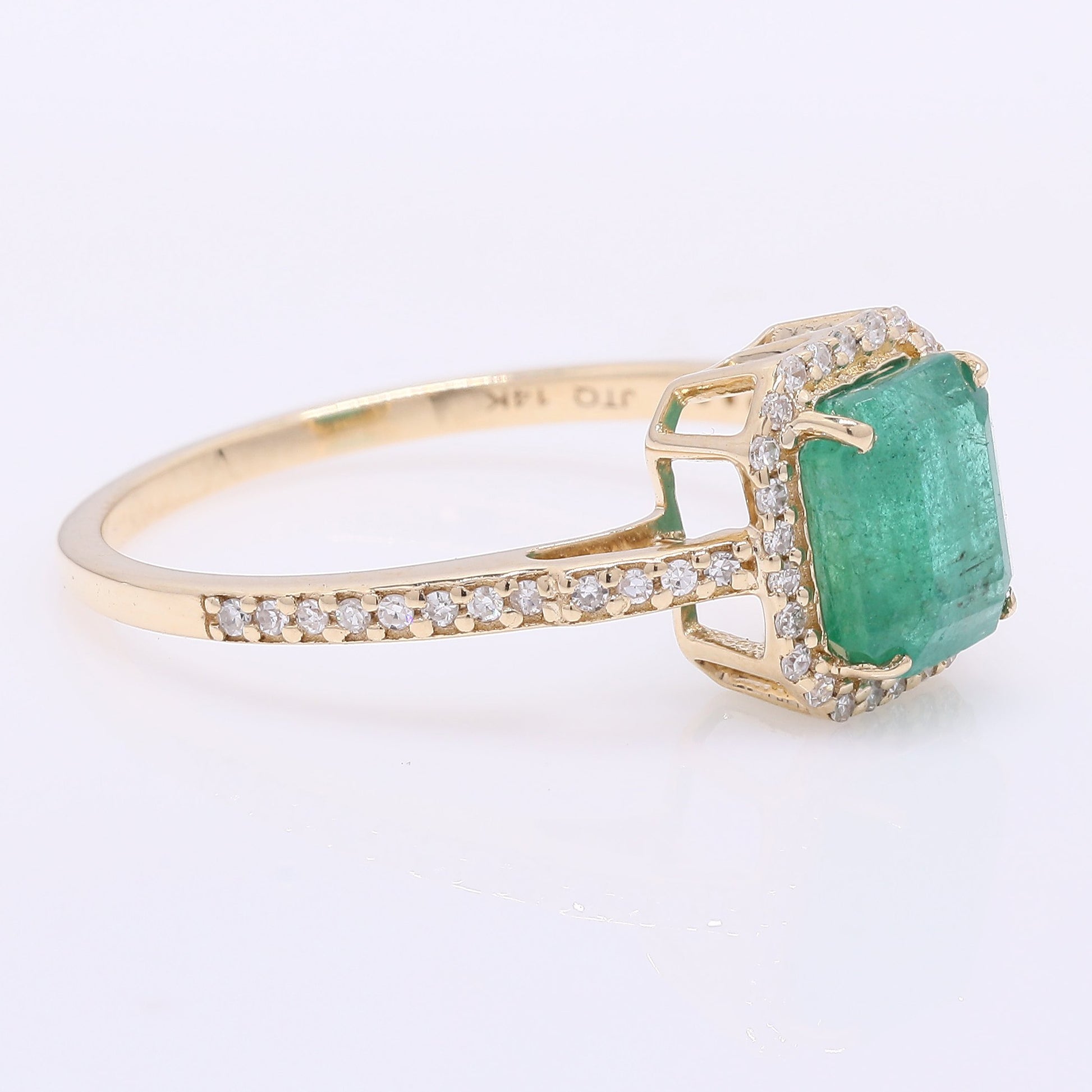 1.83 Ct Octagon Step Cut Natural Emerald 14K Gold Ring