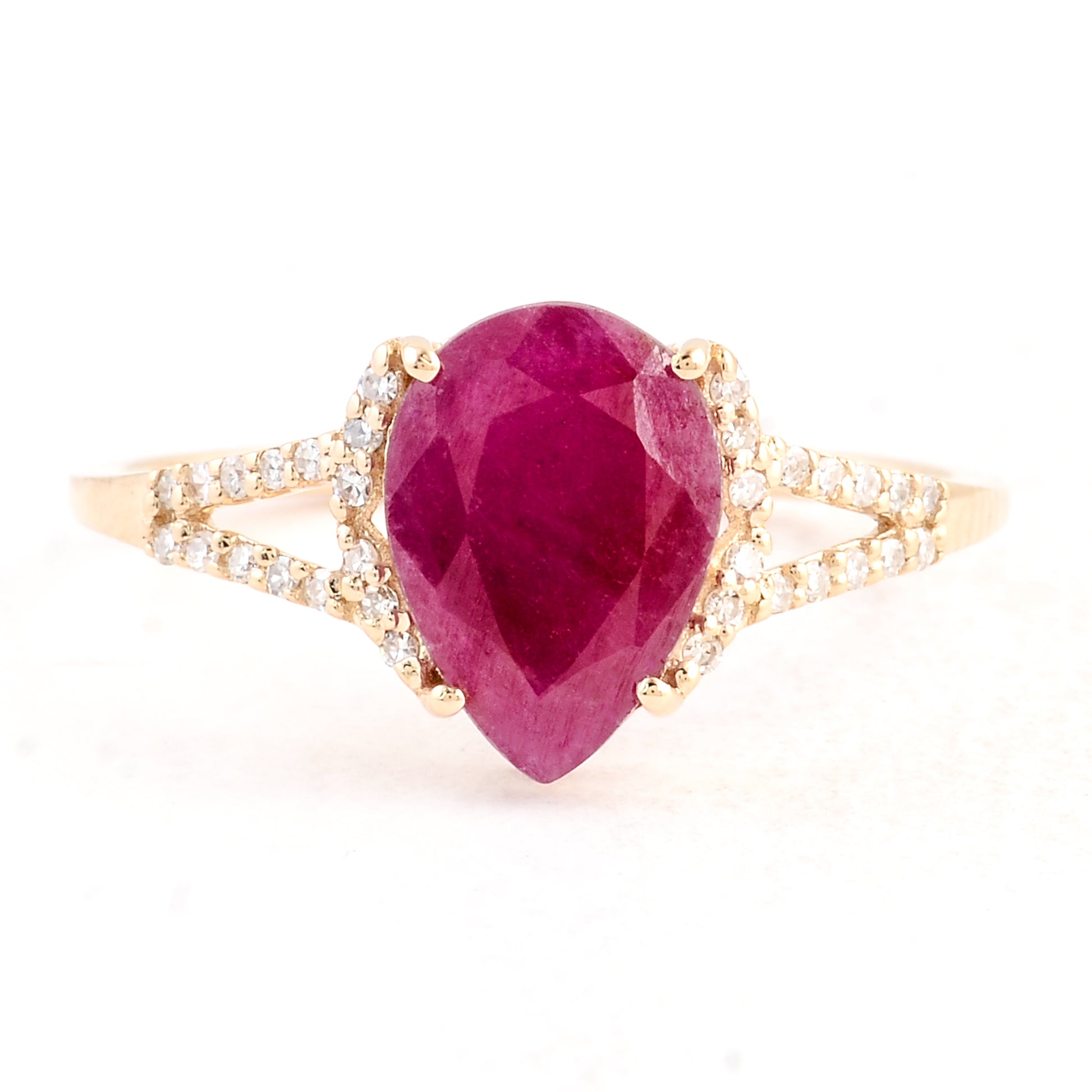 1.84 Ct Pear Mixed Cut Natural Corundum Ruby 14K Gold Ring