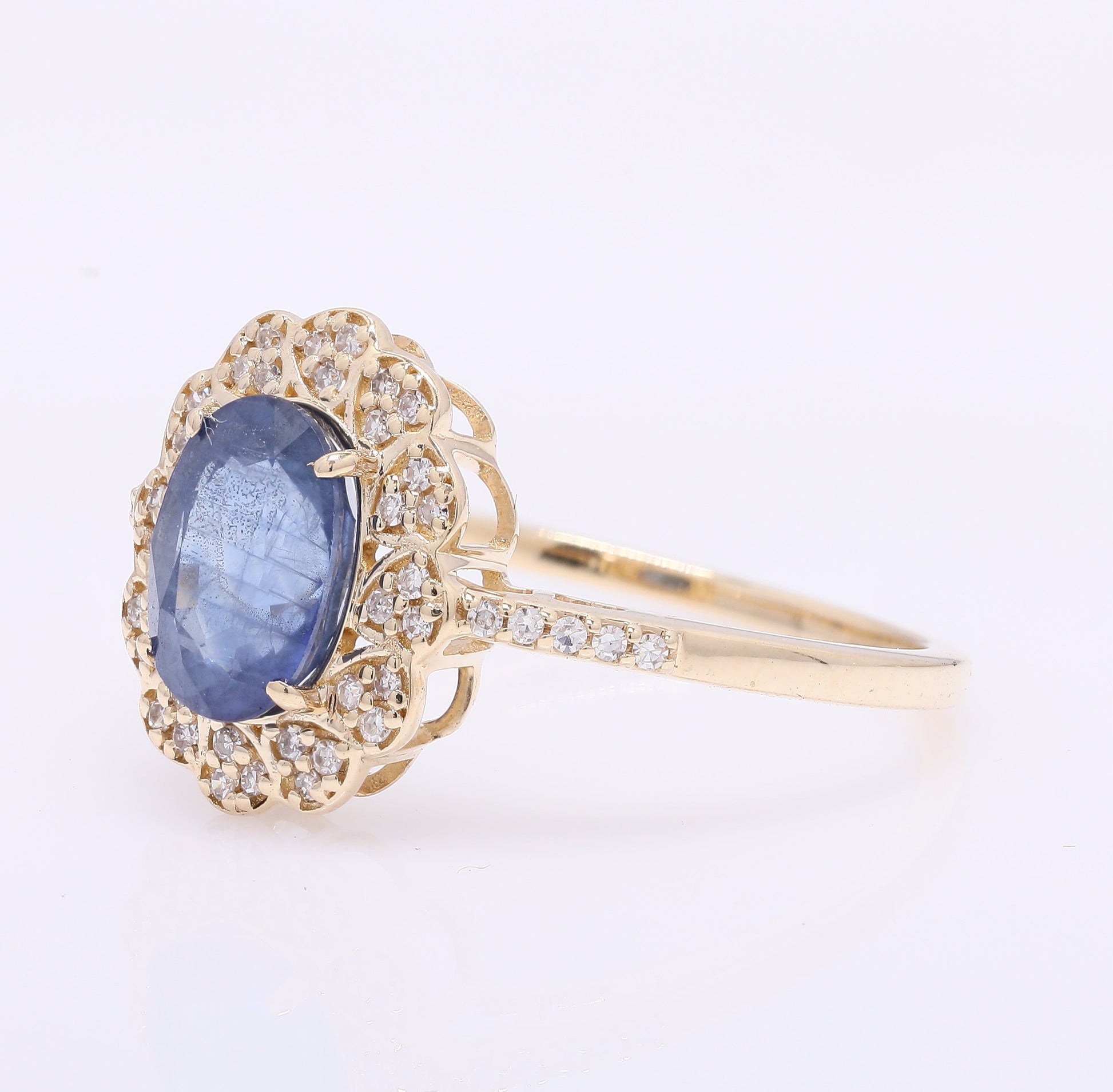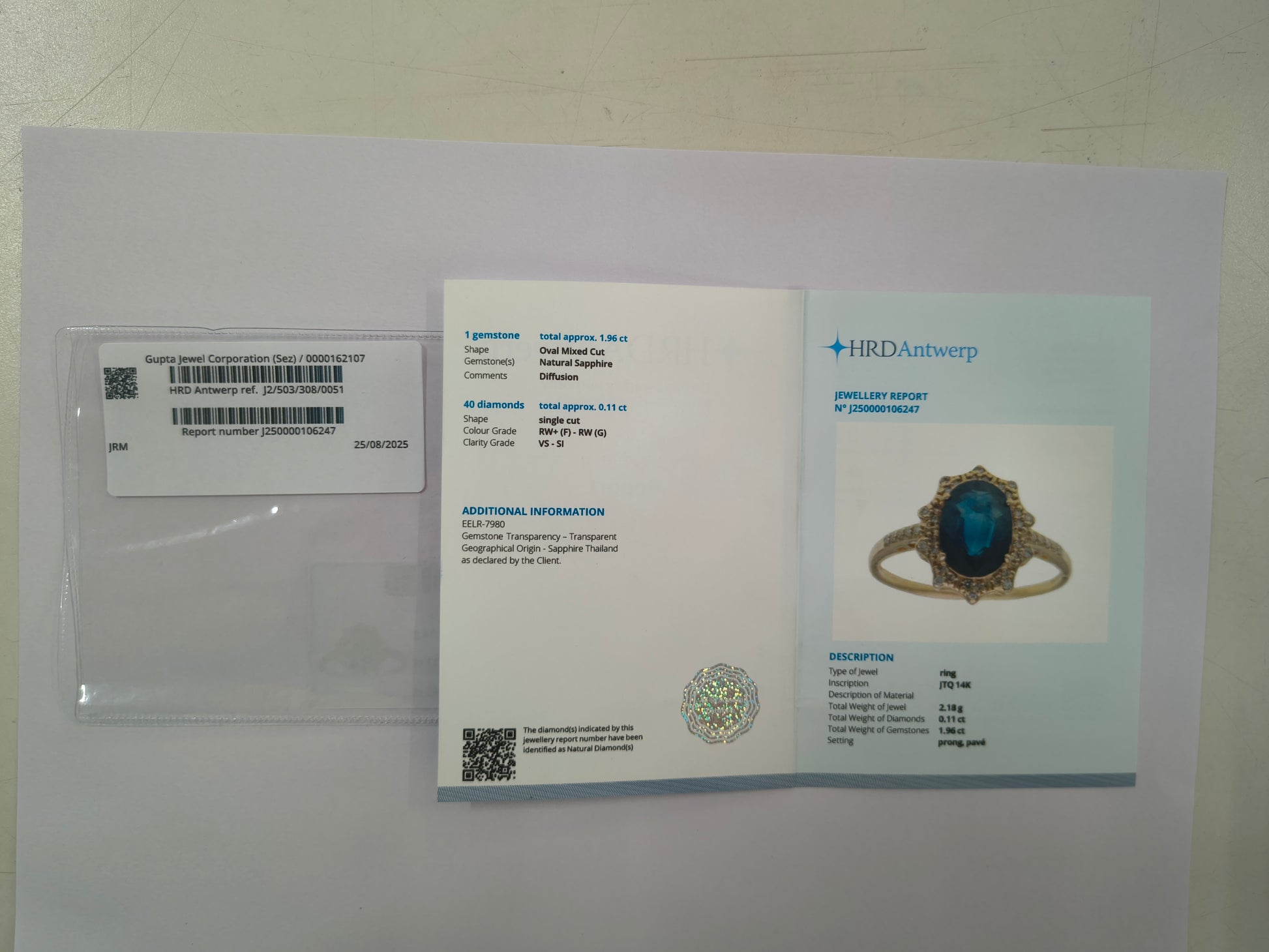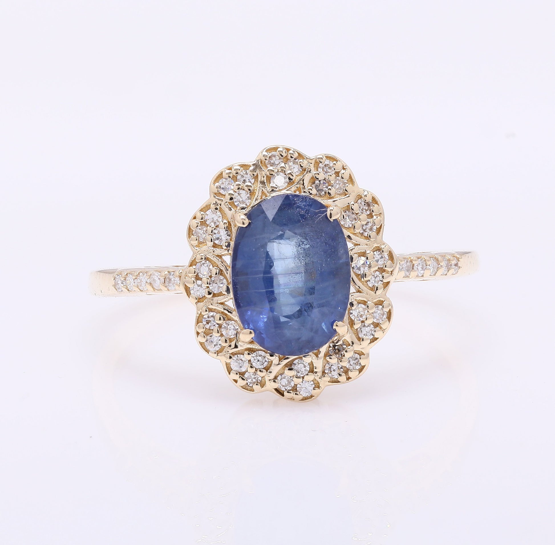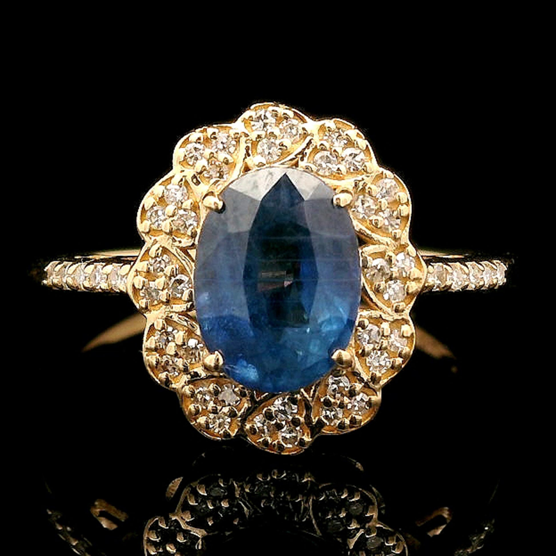 1.86 Ct Oval Mixed Cut Natural Sapphire 14K Gold Ring