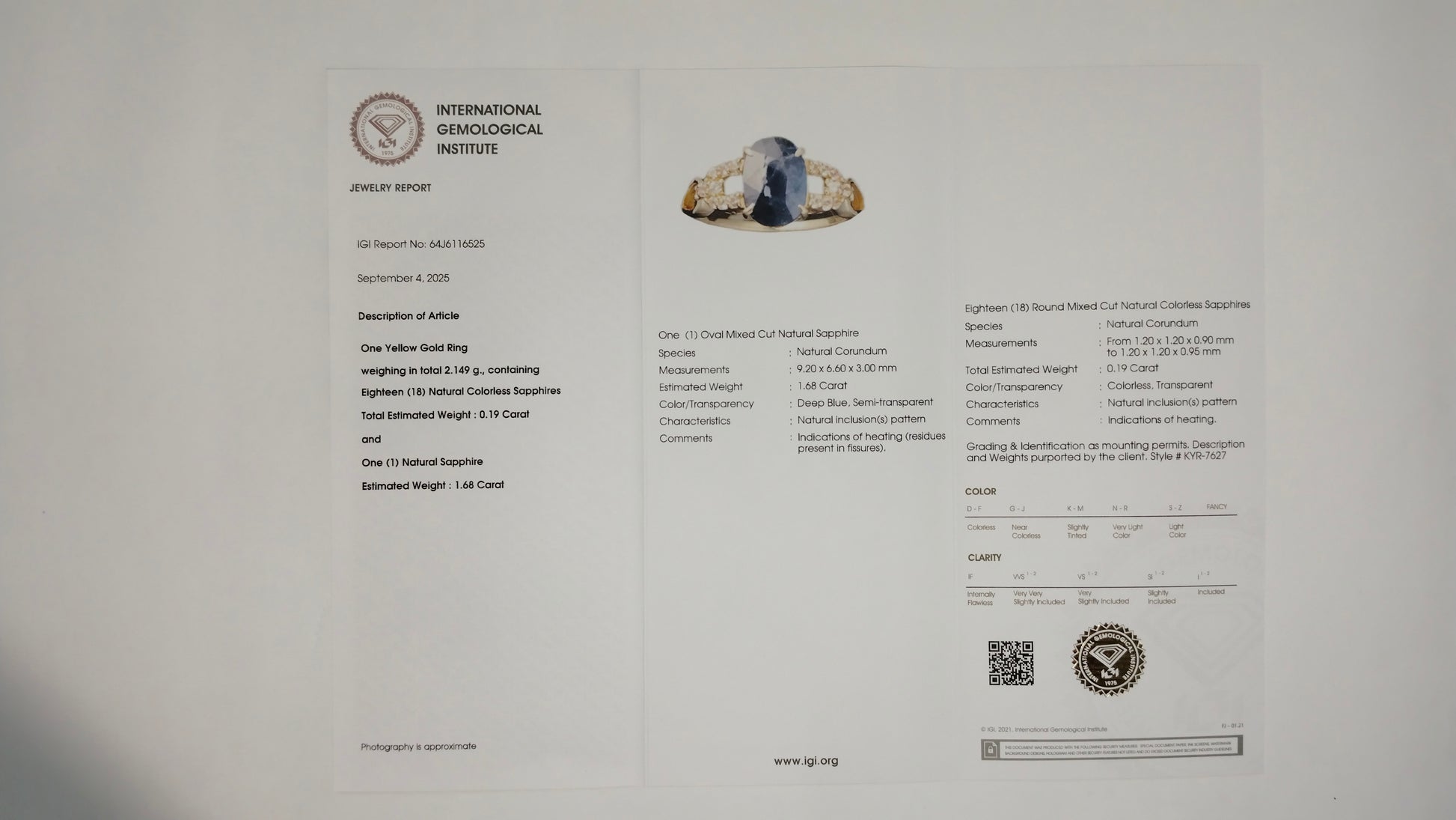 1.87 Ct Oval Mixed Cut Natural Corundum Sapphire 14K Gold Ring