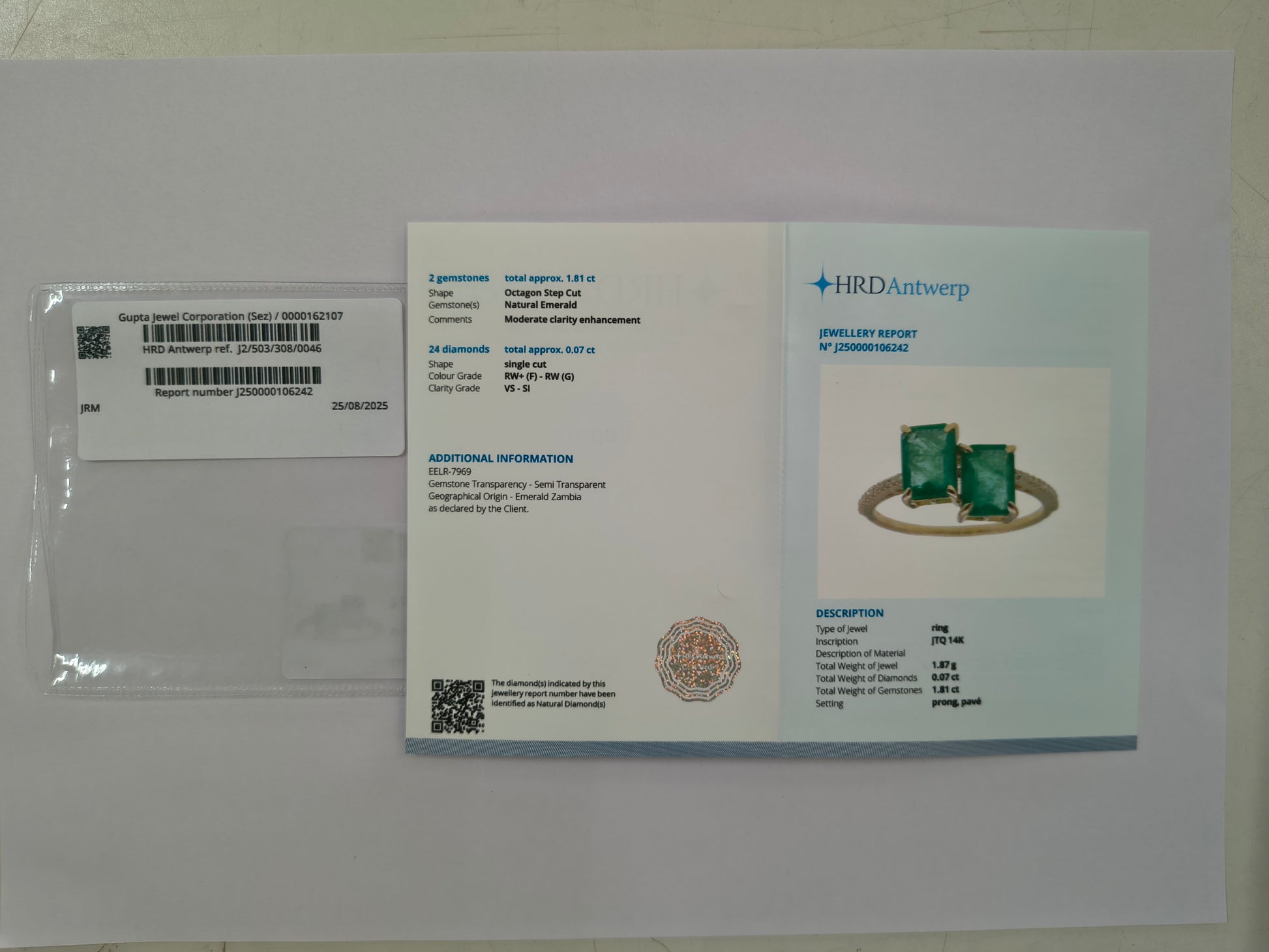 1.88 Ct Octagon Step Cut Natural Emerald 14K Gold Ring