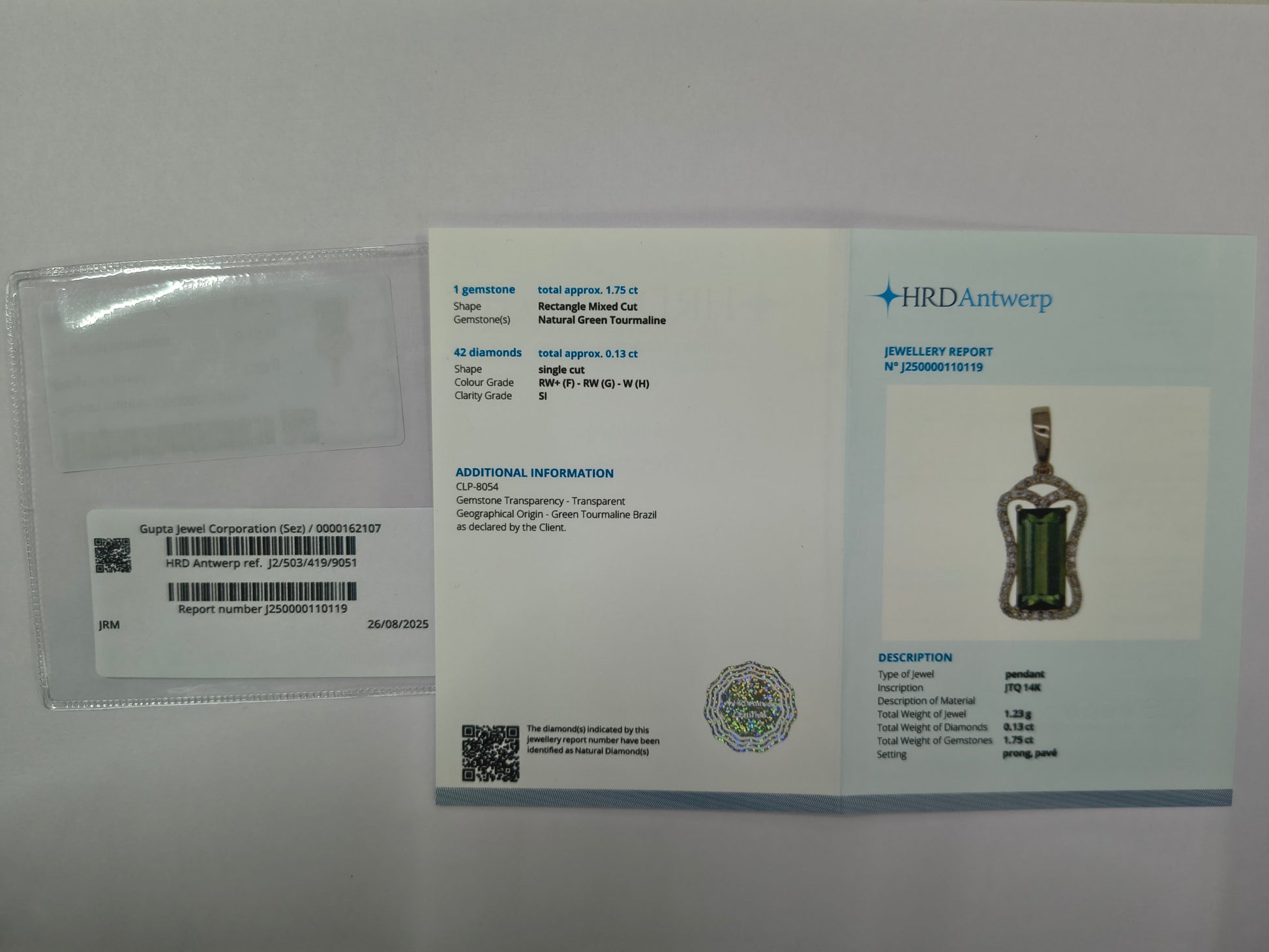 - Certificate Number J250000110119