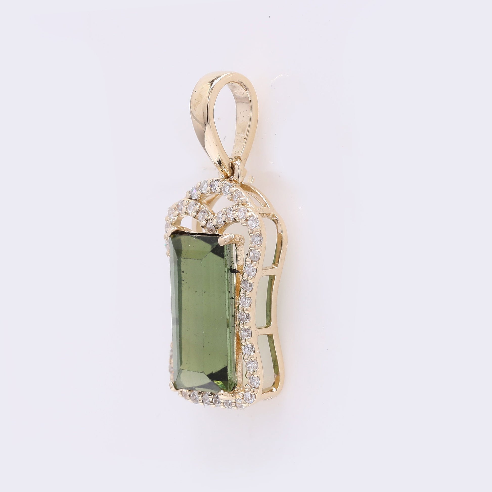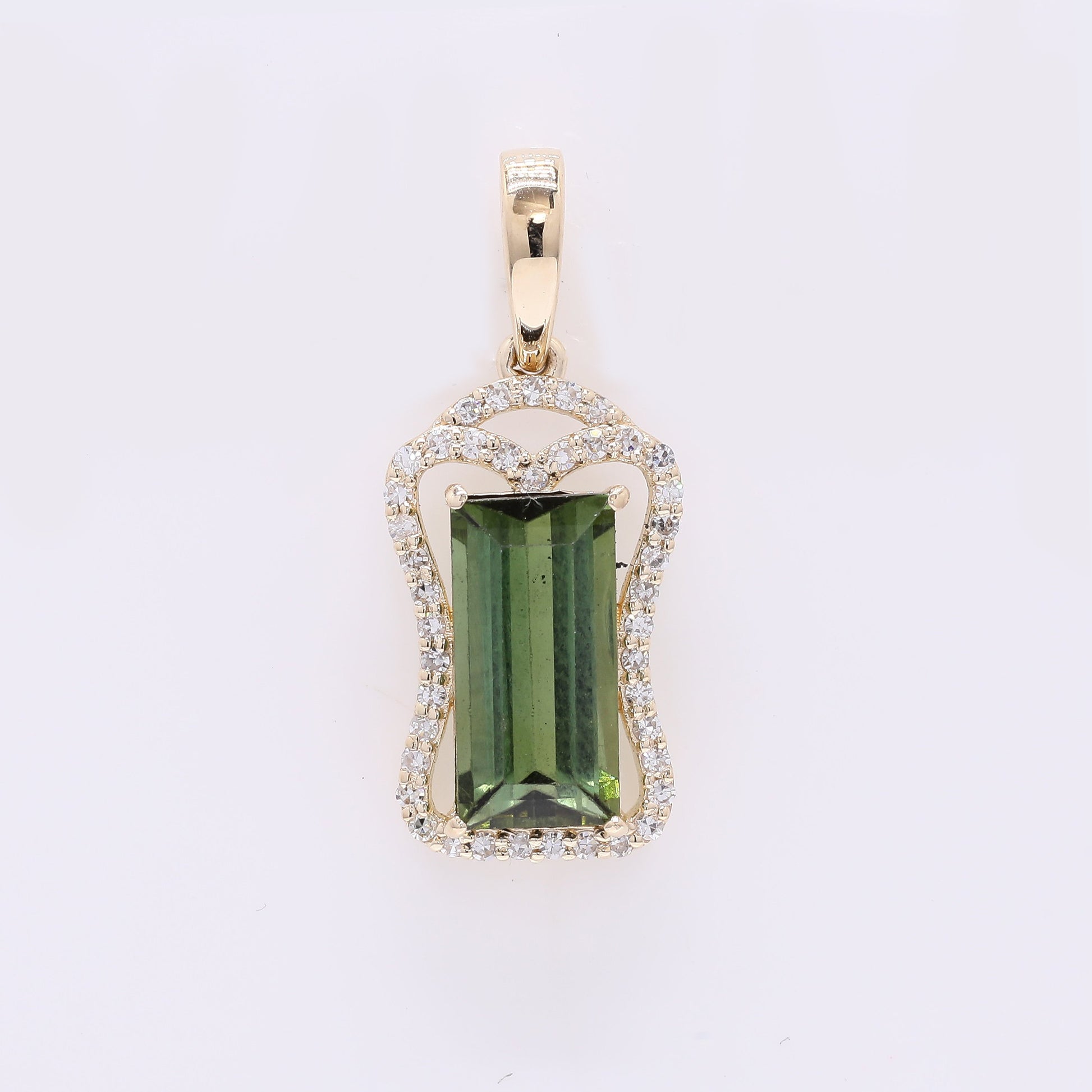 1.88 Ct Rectangle Mixed Cut Natural Tourmaline 14K Gold Pendant