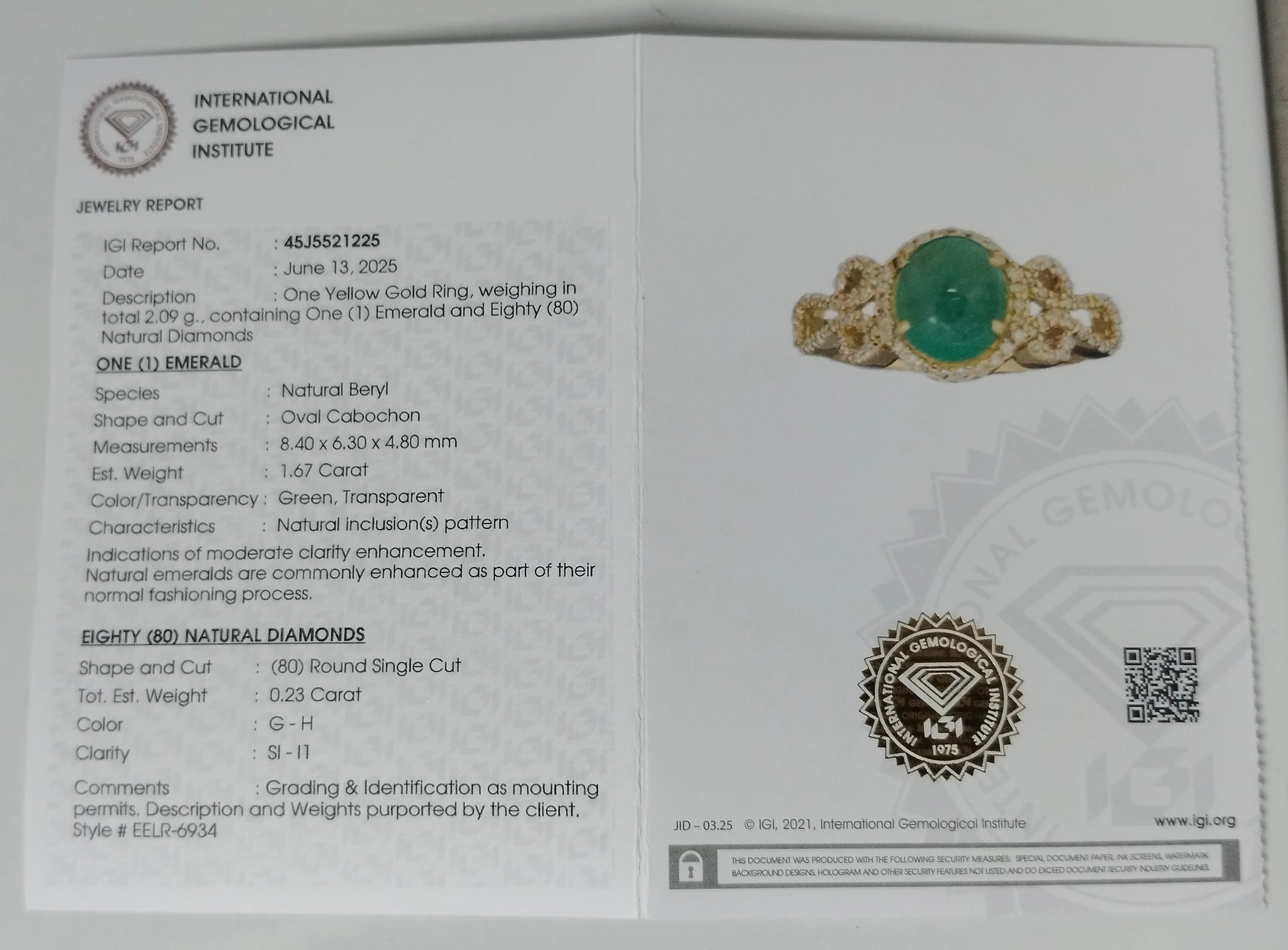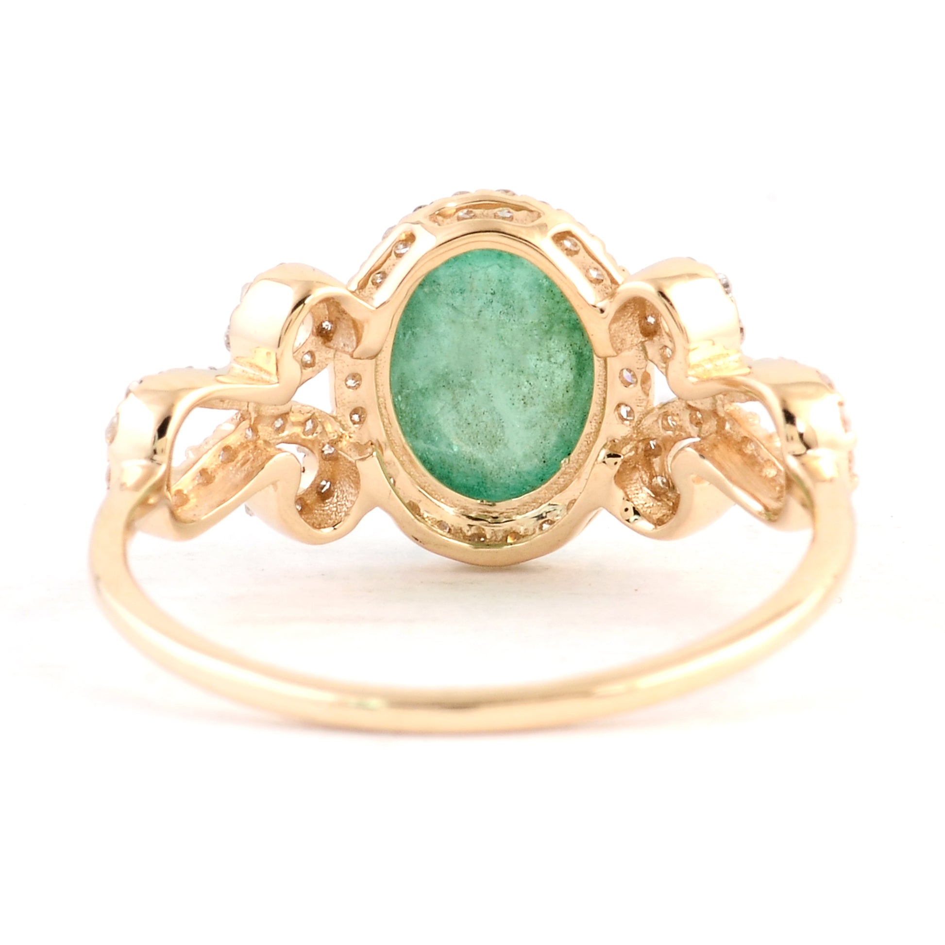 1.90 Ct Oval Cabochon Natural Beryl Emerald 14K Gold Ring