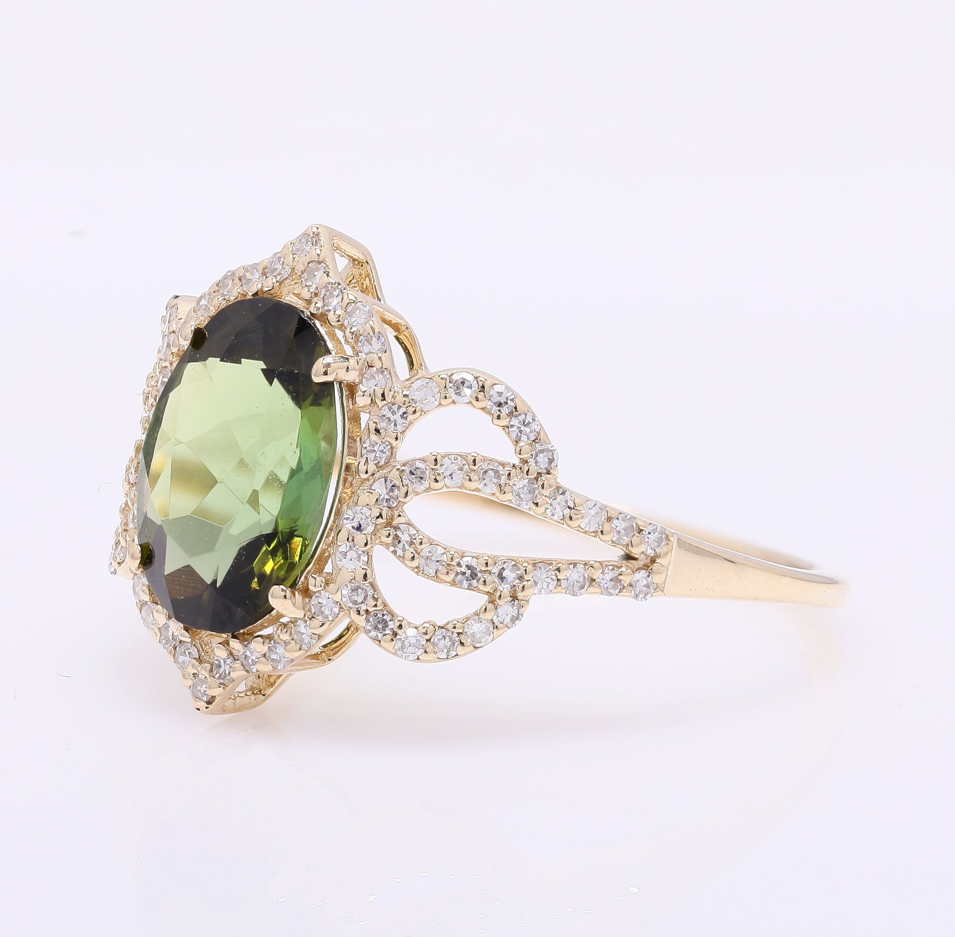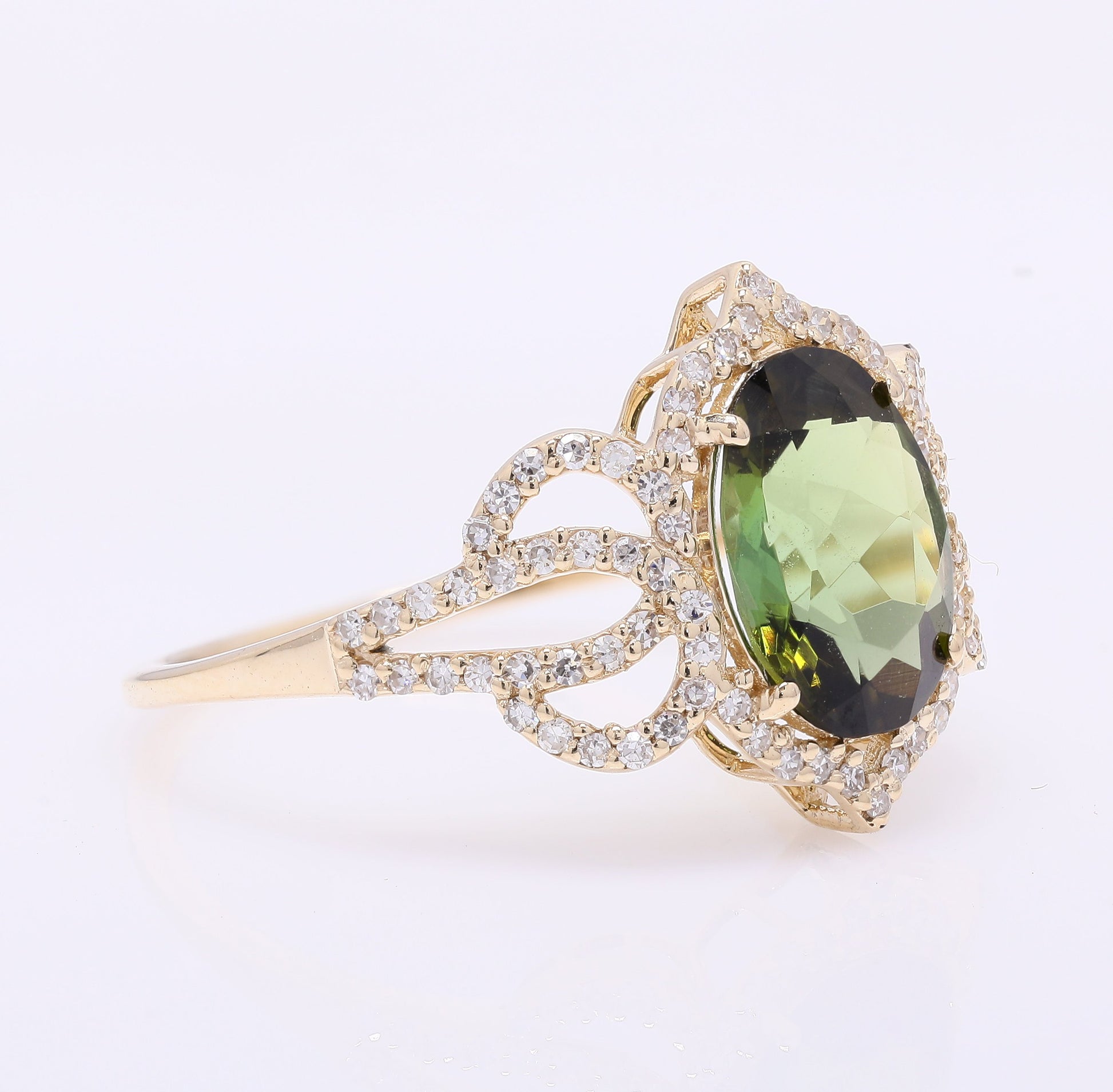 1.90 Ct Oval Mixed Cut Natural Tourmaline 14K Gold Ring