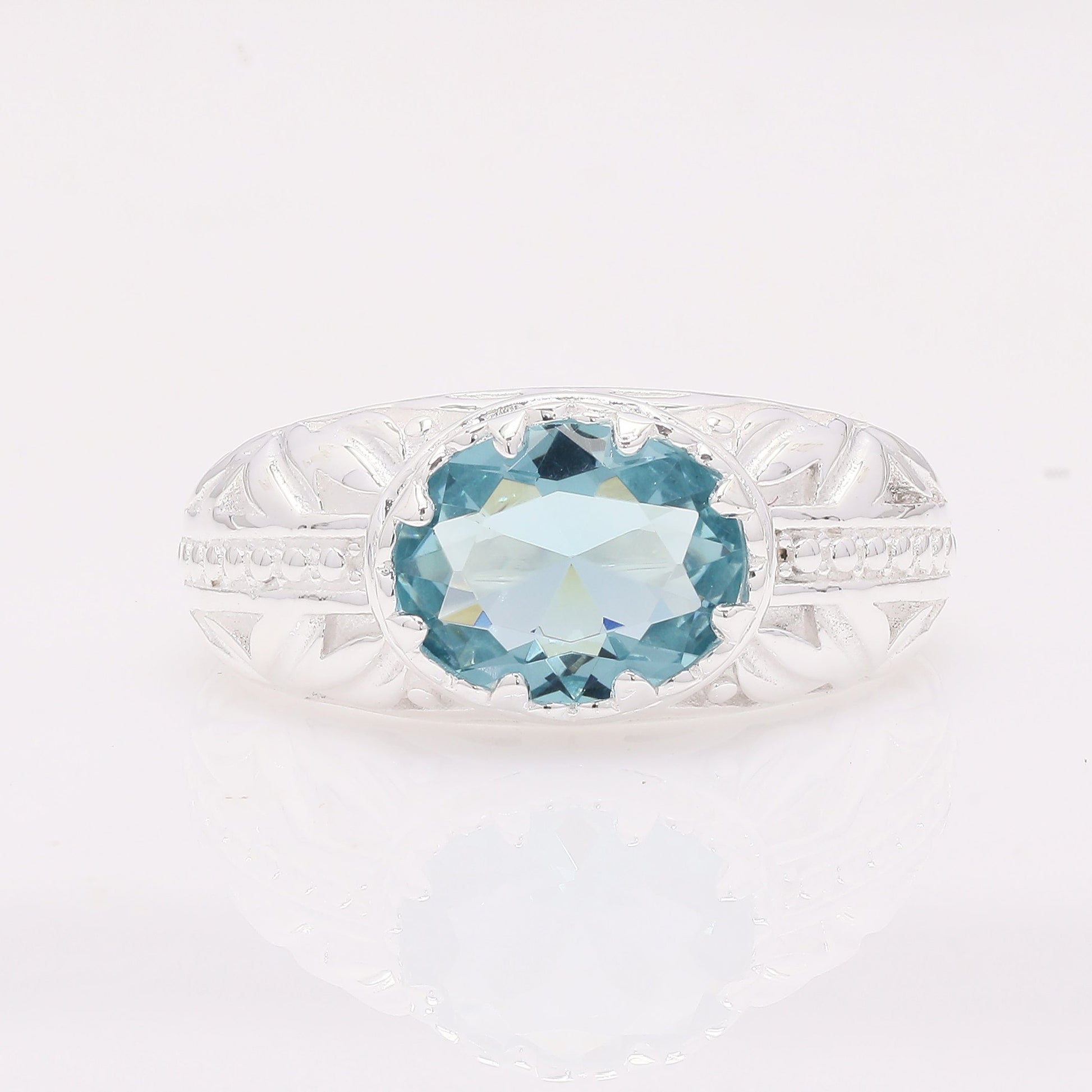 1.91 Ct Oval Created Aquamarine 925 Silver Ring