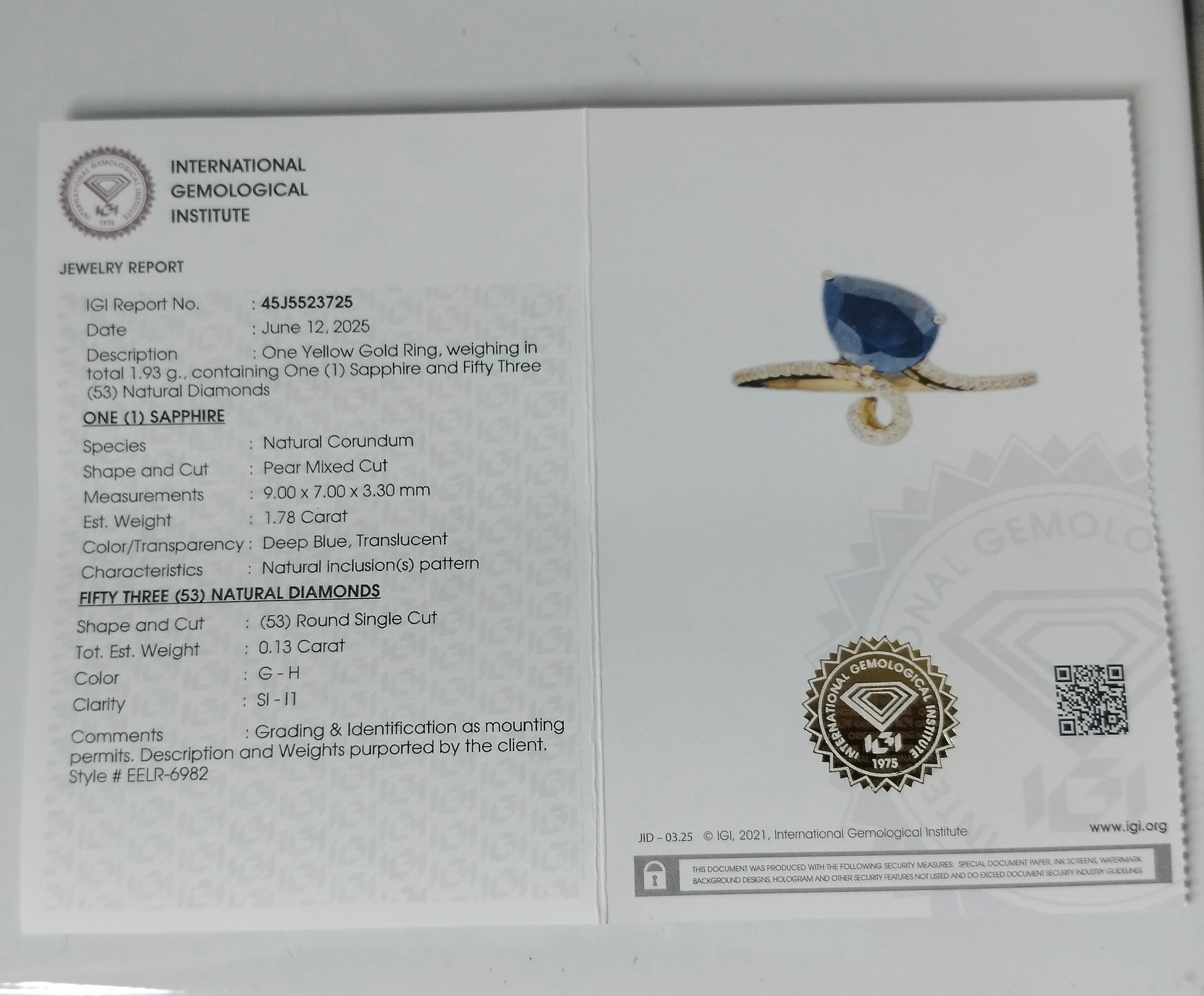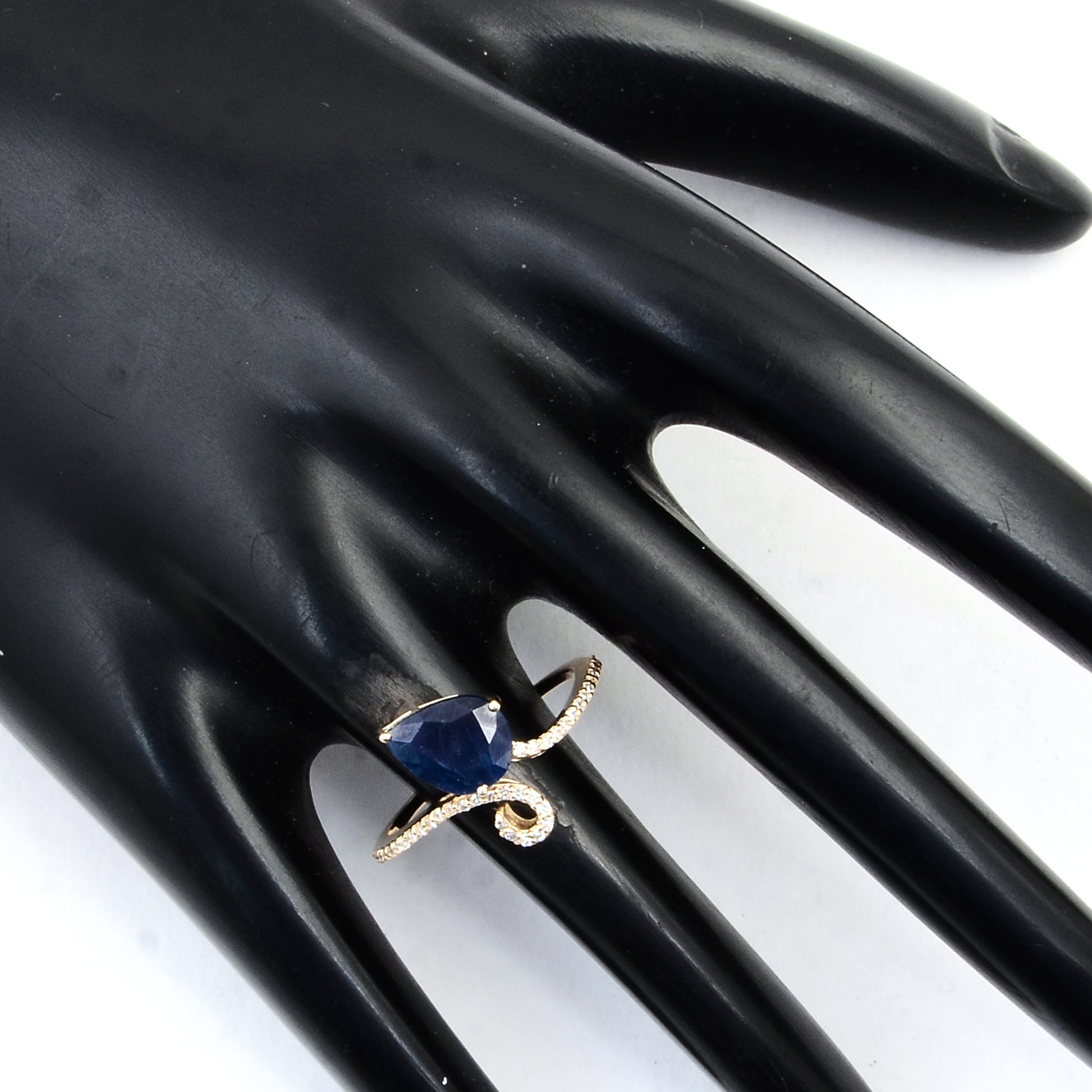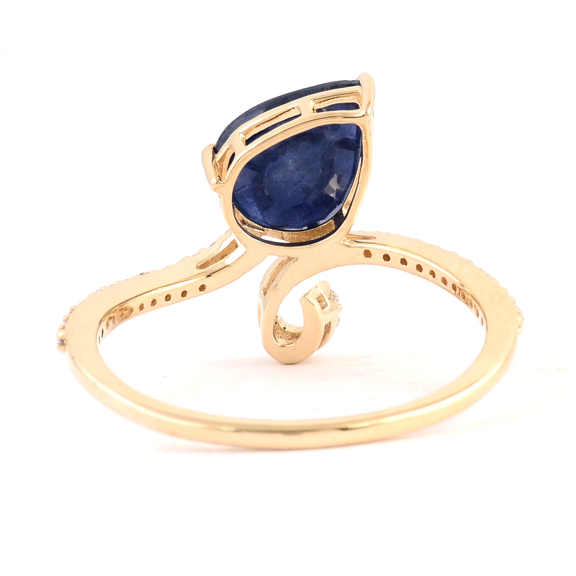 1.91 Ct Pear Mixed Cut Natural Corundum Sapphire 14K Gold Ring