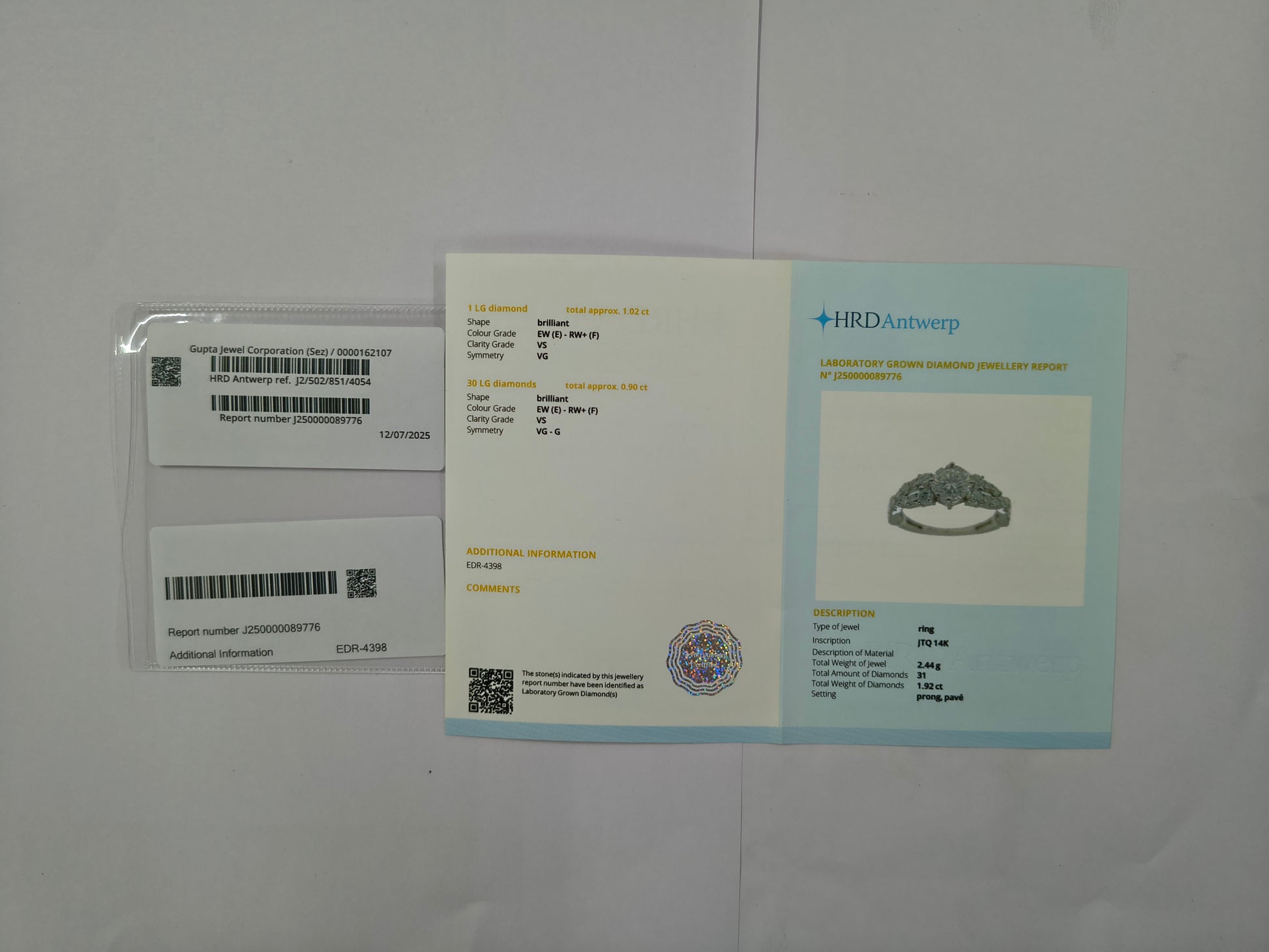 1.92 Carats Lab Grown Diamond 14K Gold Ring