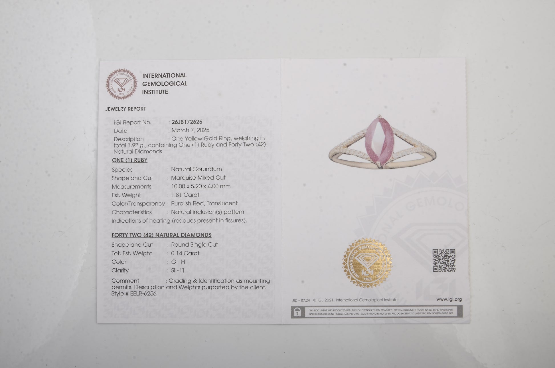 - Lab Name: International Gemological Institute (IGI)