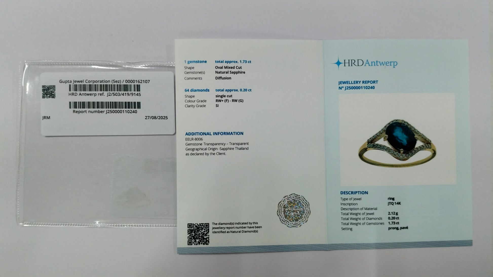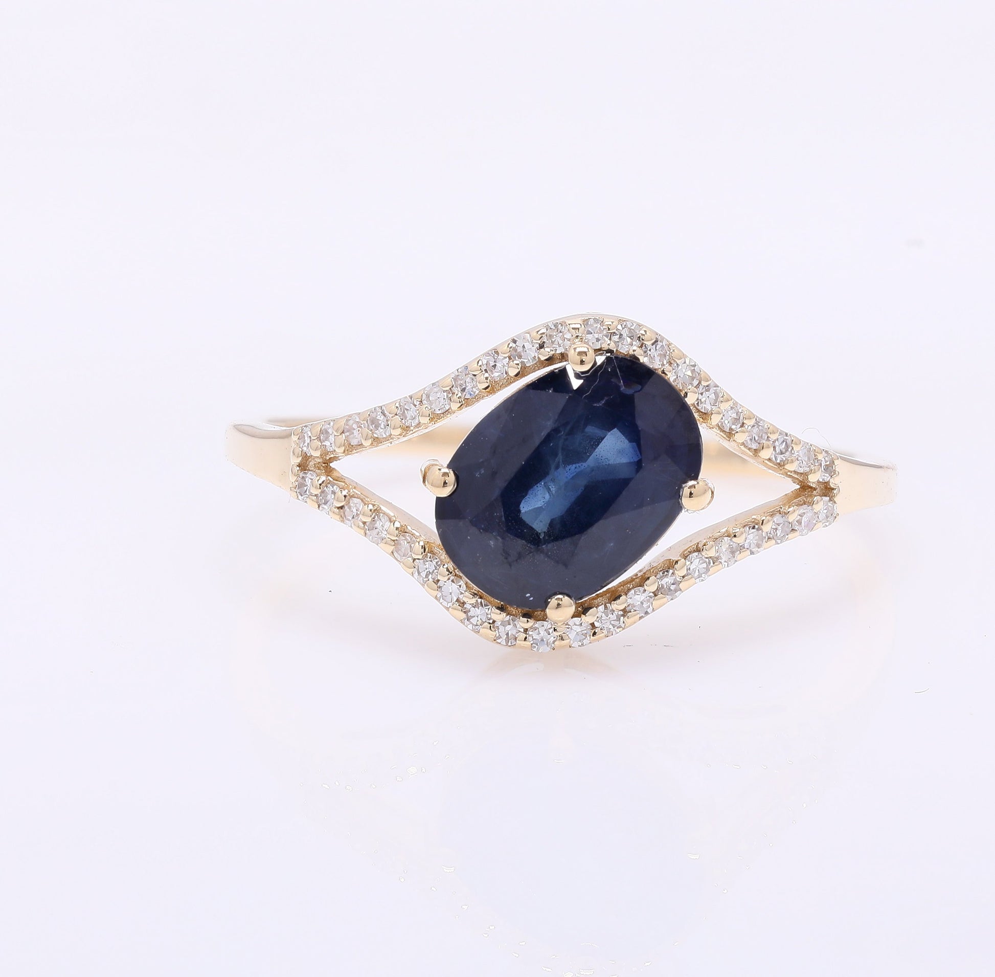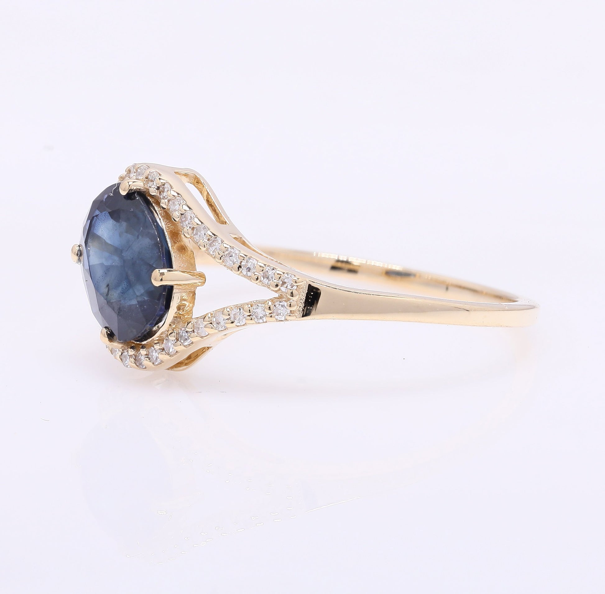 1.93 Ct Oval Mixed Cut Natural Sapphire 14K Gold Ring