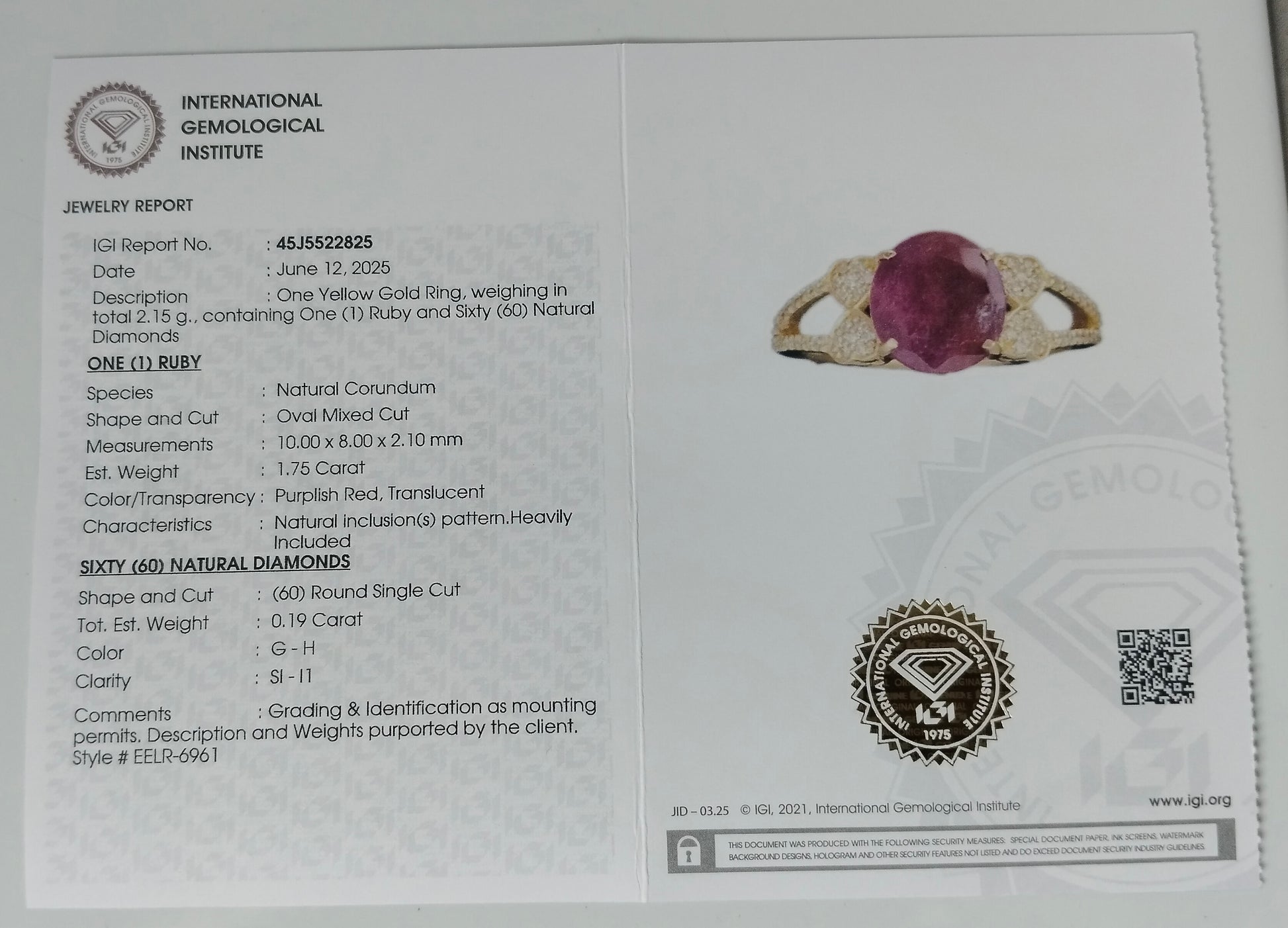 1.94 Ct Oval Mixed Cut Natural Corundum Ruby 14K Gold Ring