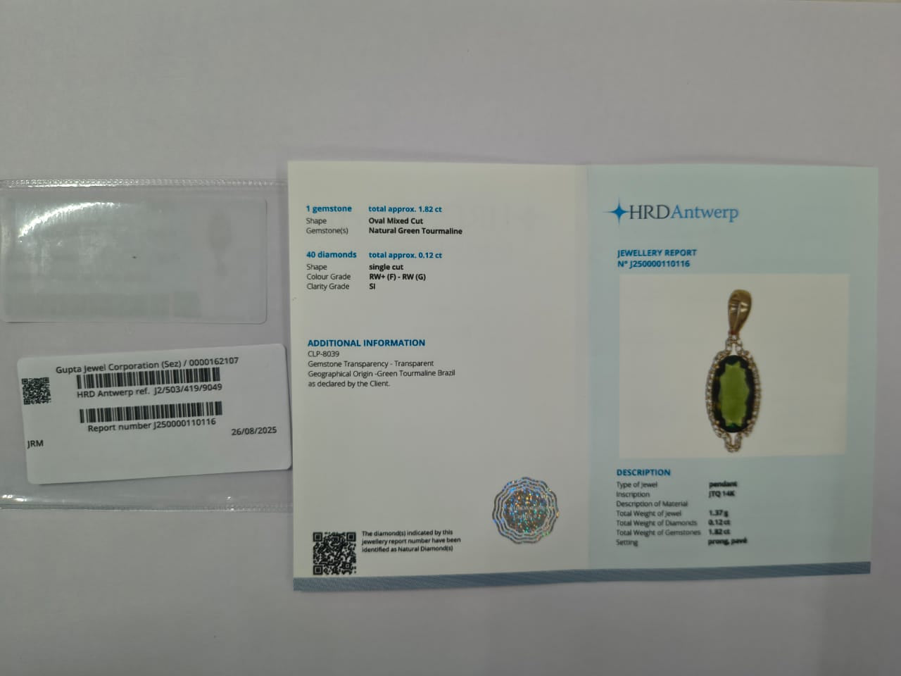 1.94 Ct Oval Mixed Cut Natural Tourmaline 14K Gold Pendant