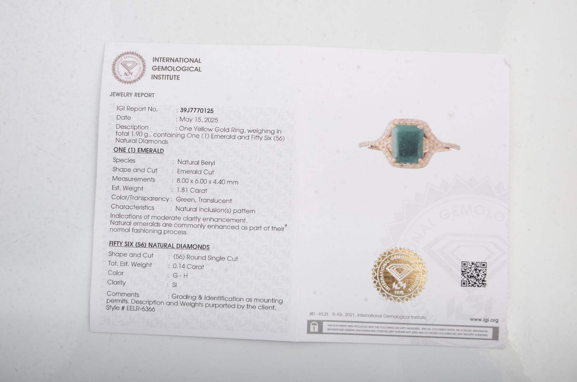 1.95 Ct Emerald Cut Natural Beryl Emerald 14K Gold Ring