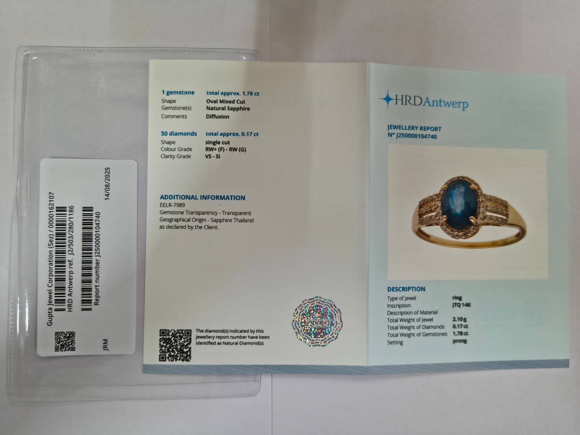 1.95 Ct Oval Mixed Cut Natural Sapphire 14K Gold Ring