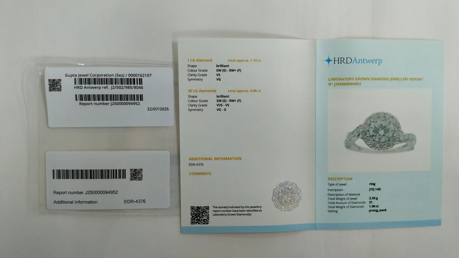 1.96-Carat Lab-Grown Diamond Round Brilliant Ring - HRD Certified