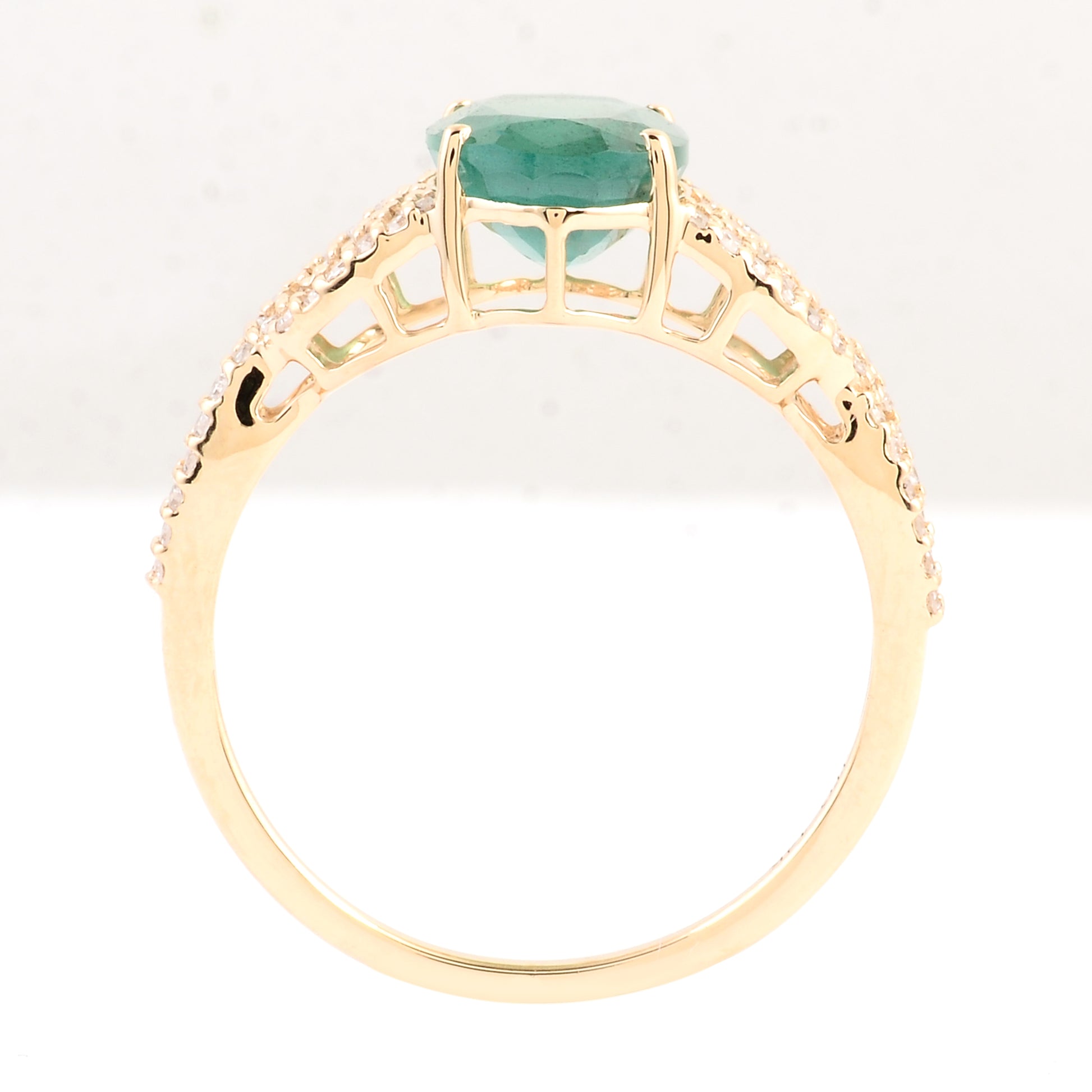 1.97 Ct Oval Mixed Cut Natural Beryl Emerald 14K Gold Ring