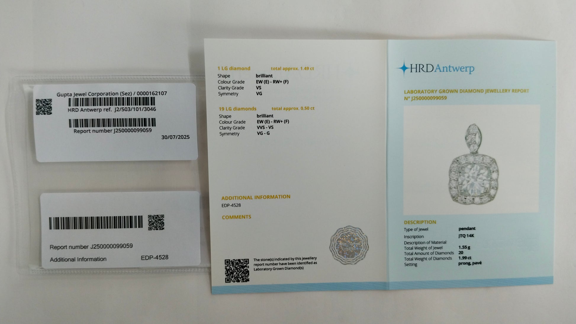 1.99 Carats Lab Grown Diamond 14K Gold Pendant