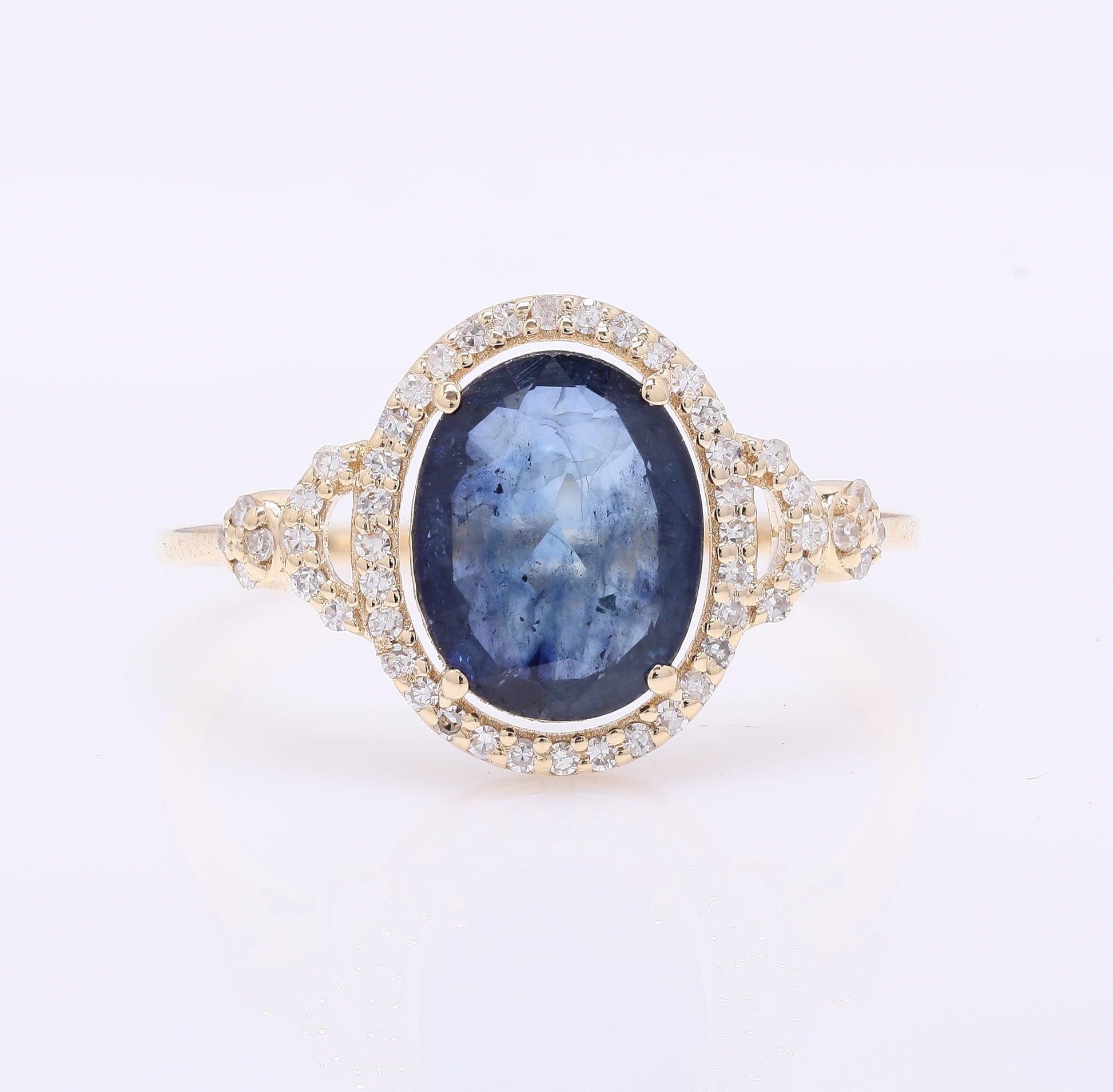 1.99 Ct Oval Mixed Cut Natural Sapphire 14K Gold Ring