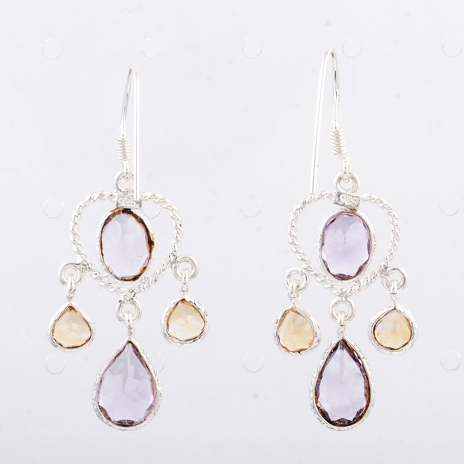 10.00 Ct Citrine, Amethyst 925 Sterling Silver Earrings