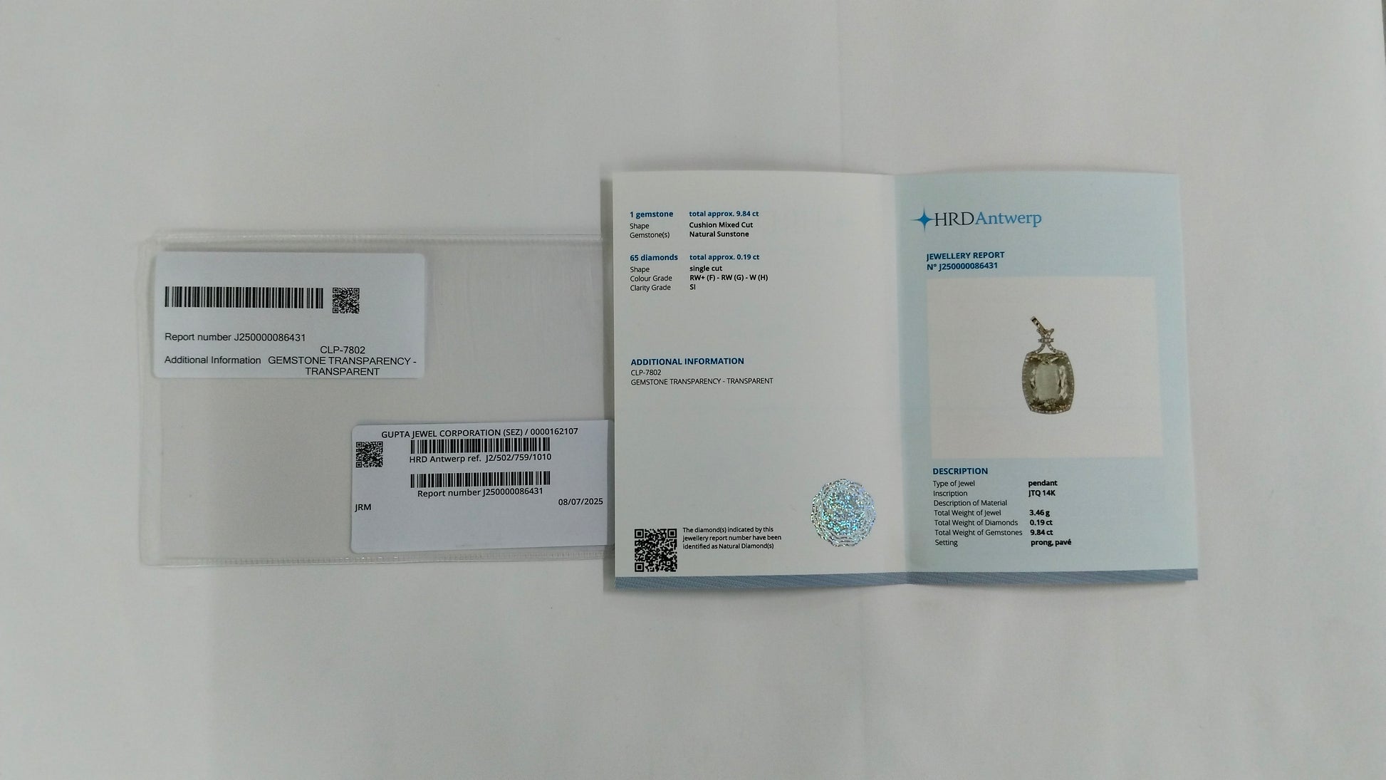 10.03 Ct Cushion Mixed Cut Natural Sunstone 14K Gold Pendant
