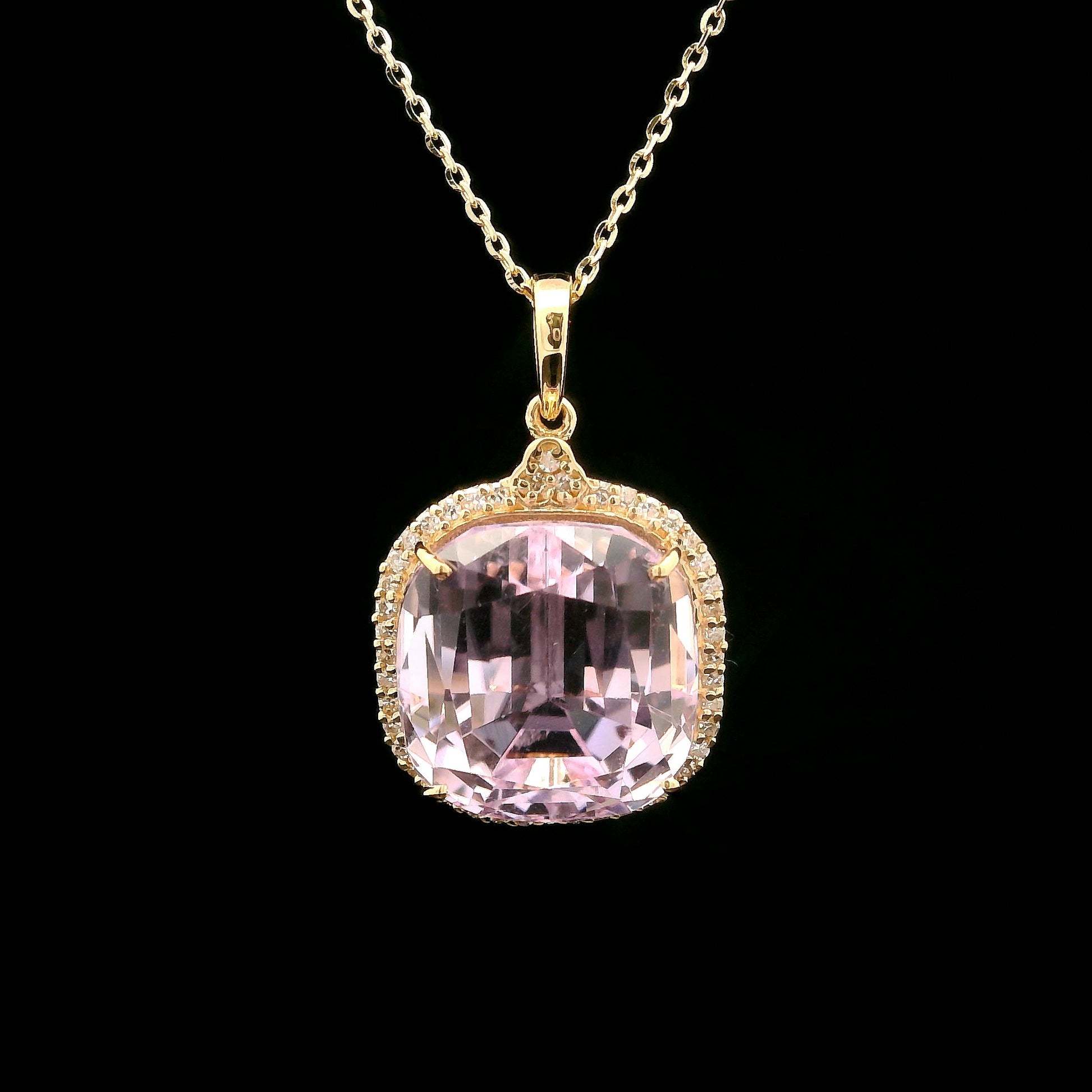 10.16 Ct Cushion Kunzite 14K Gold Pendant
