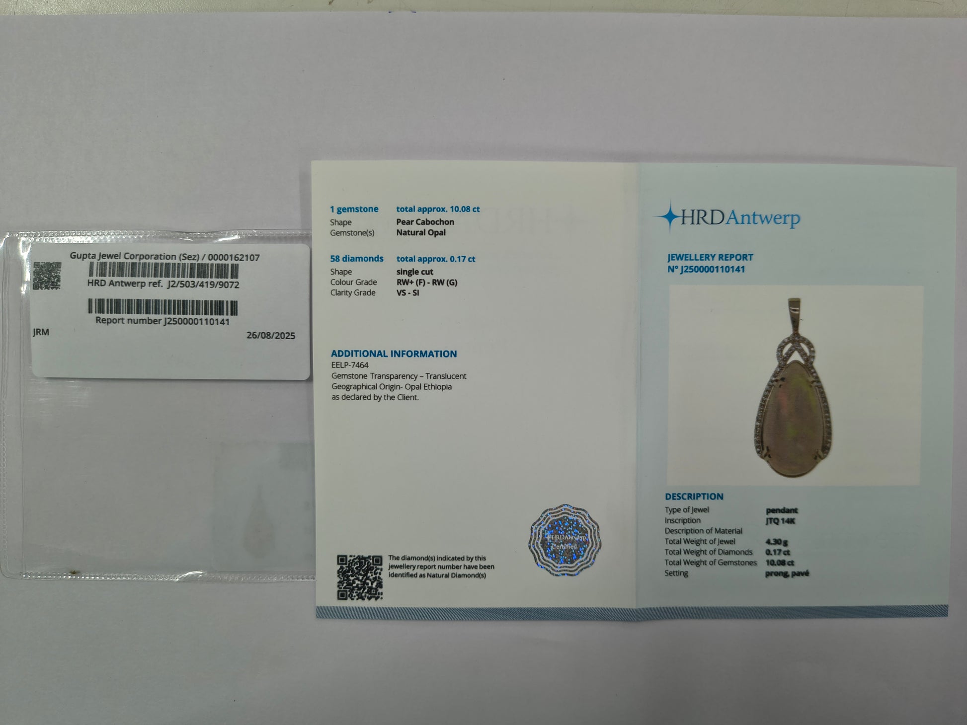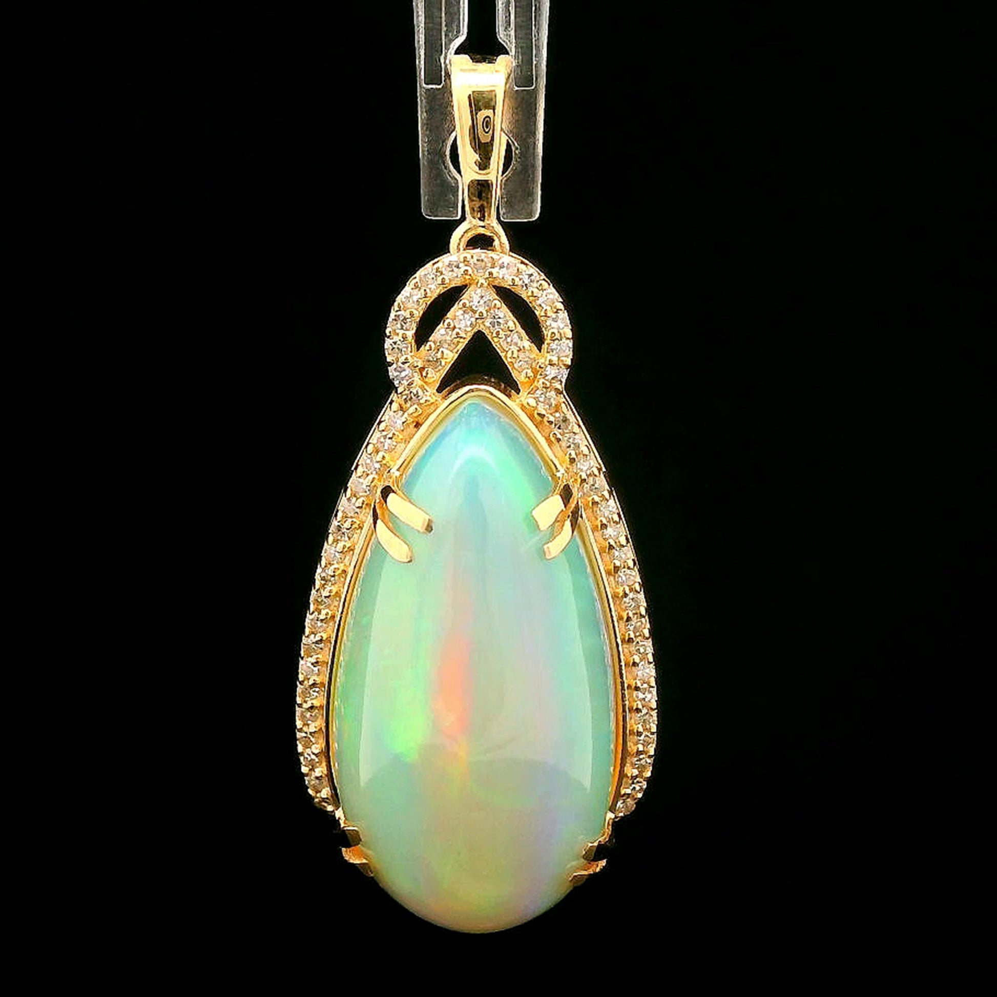 10.25 Ct Pear Cabochon Natural Opal 14K Gold Pendant