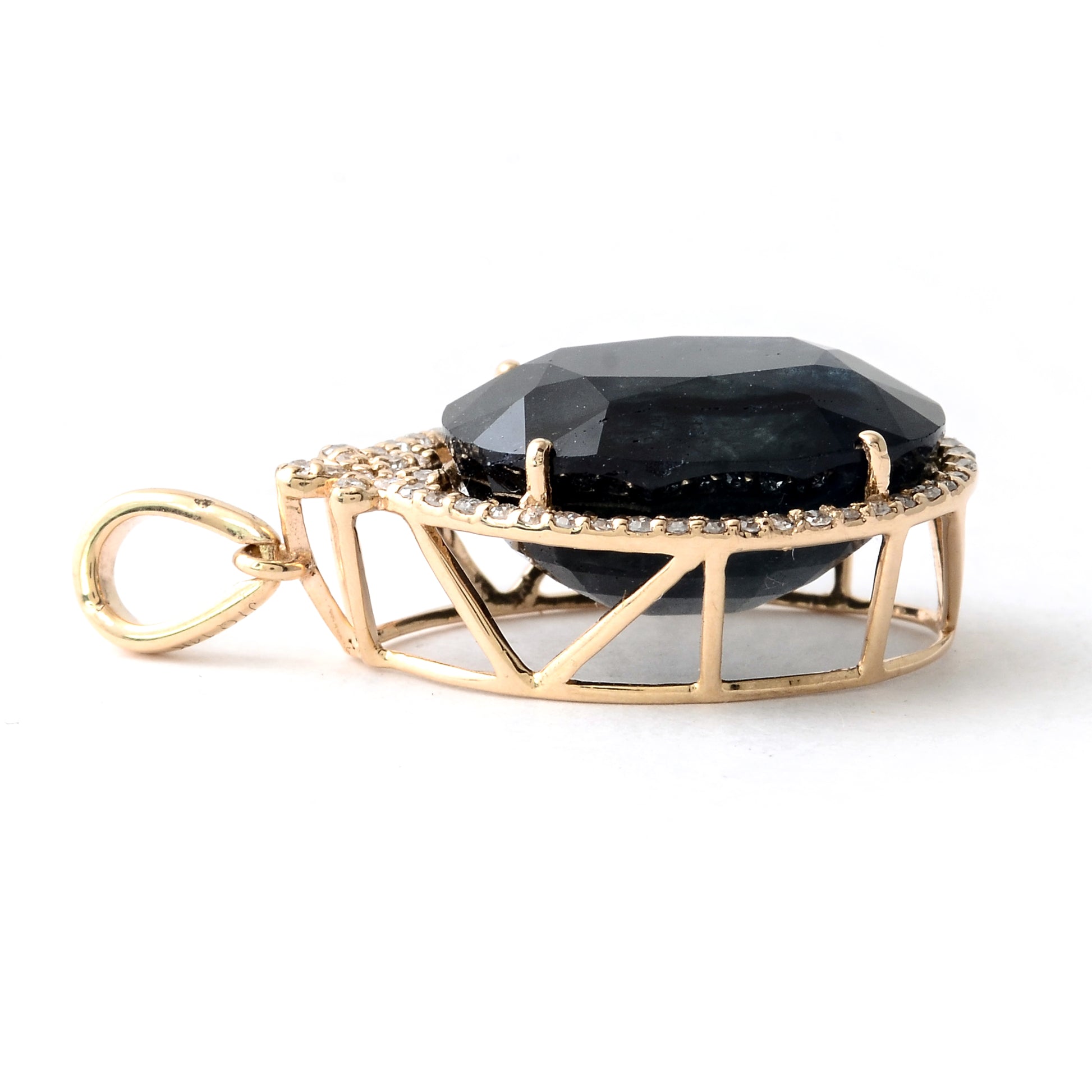 10.82 Ct Oval Mixed Cut Natural Corundum Sapphire 14K Gold Pendant