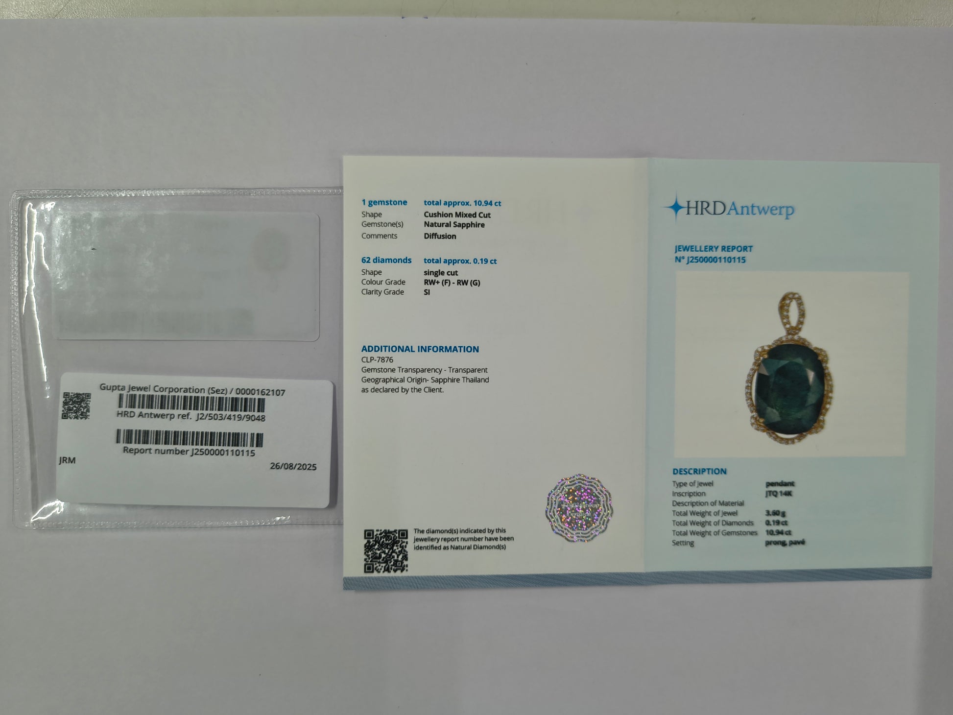 11.13 Ct Cushion Mixed Cut Natural Sapphire 14K Gold Pendant