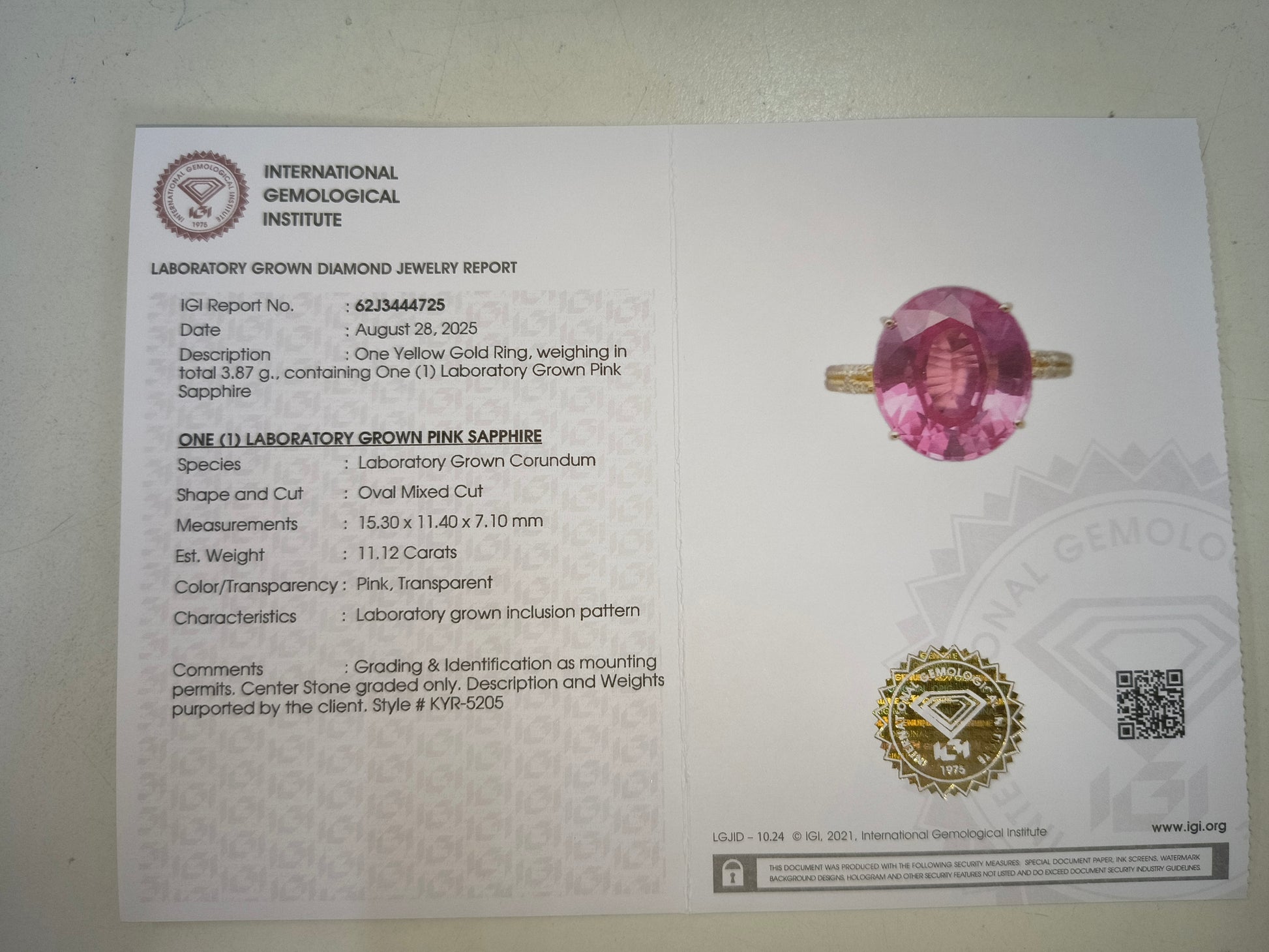 11.26 Total Carat Lab Grown Pink Sapphire 14K Gold Ring
