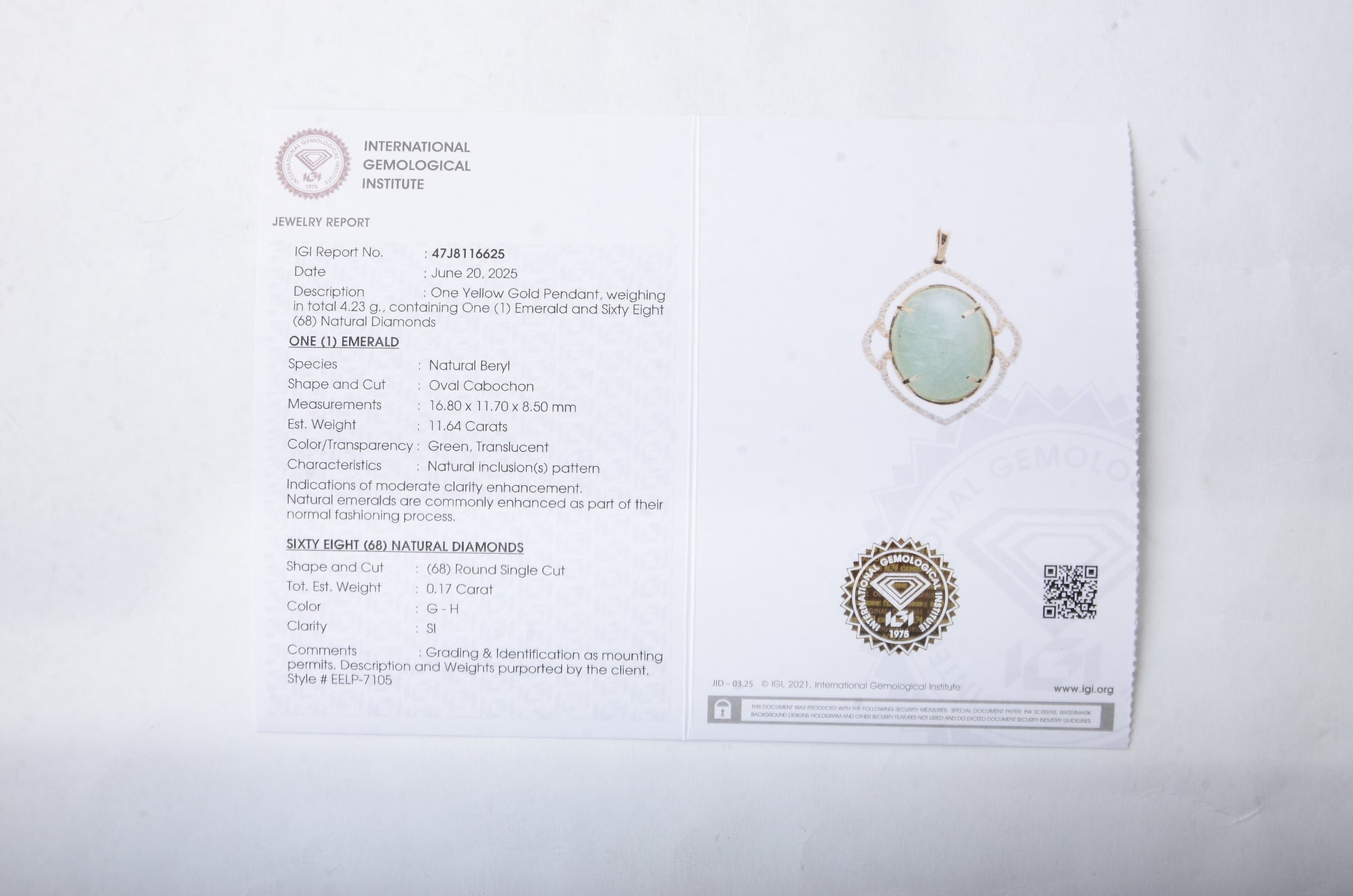 - Lab Name: International Gemological Institute (IGI)