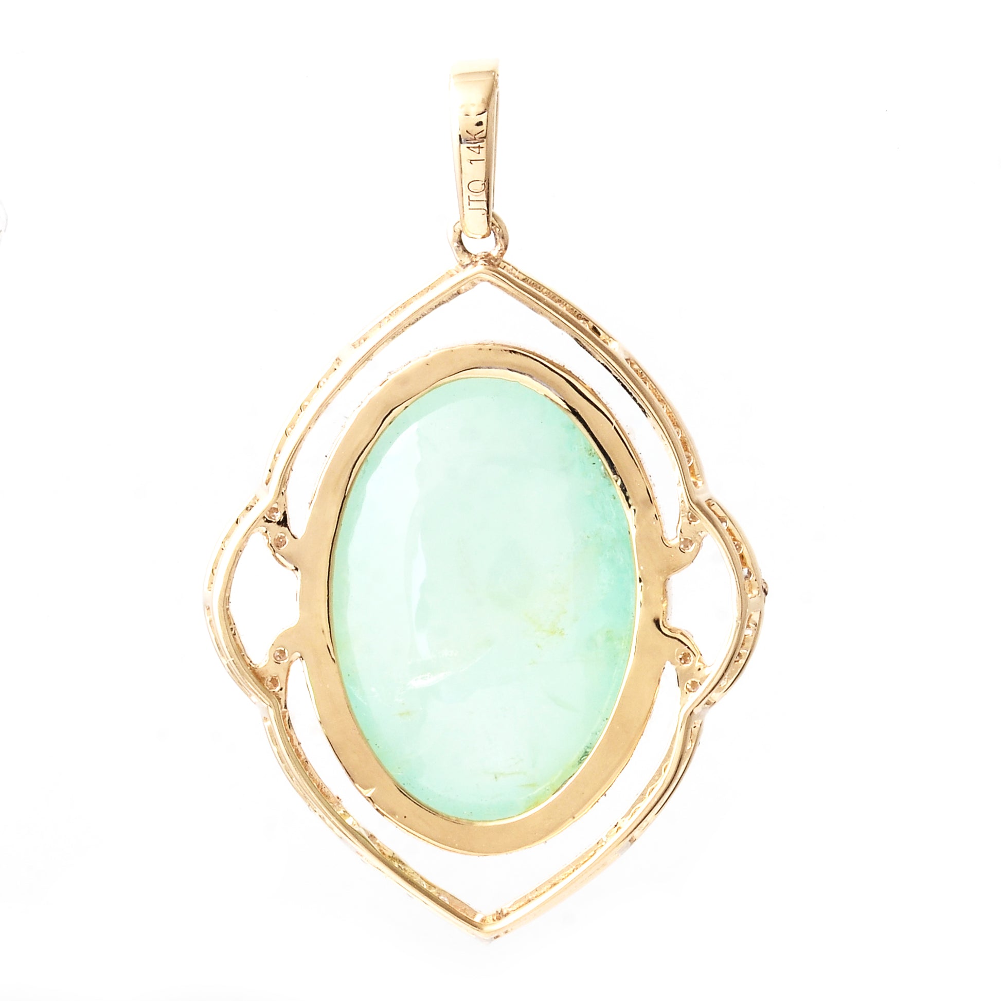 11.81 Ct Oval Cabochon Natural Beryl Emerald 14K Gold Pendant