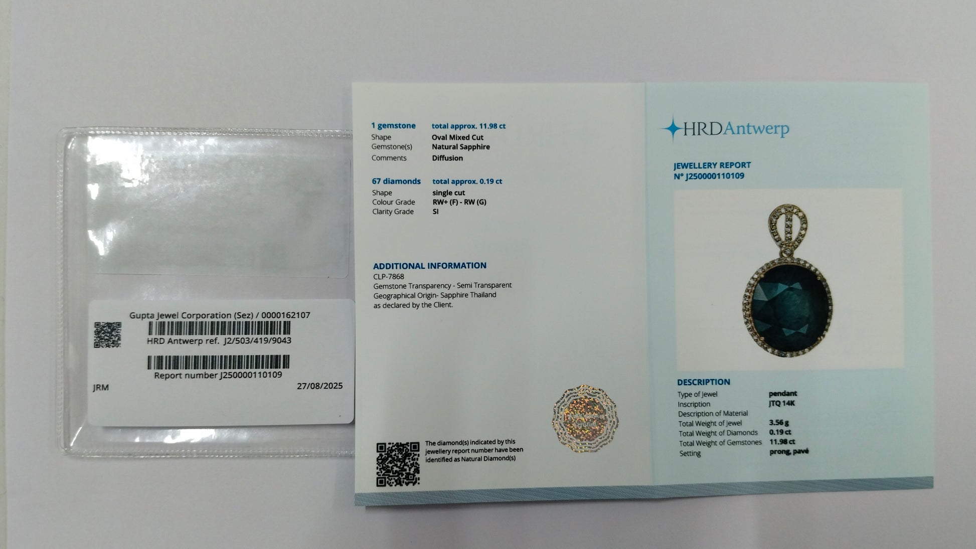 - Certificate Number J250000110109