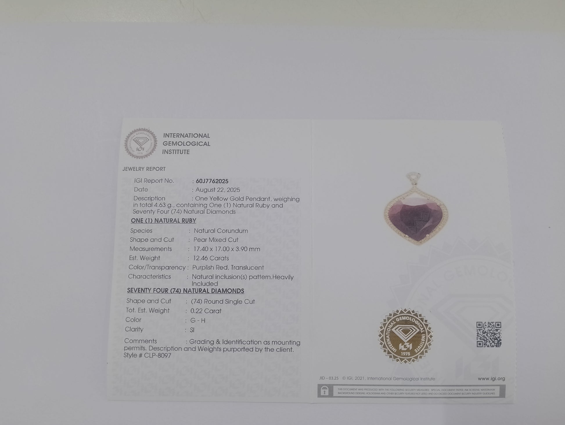 - Lab Name: International Gemological Institute (IGI)