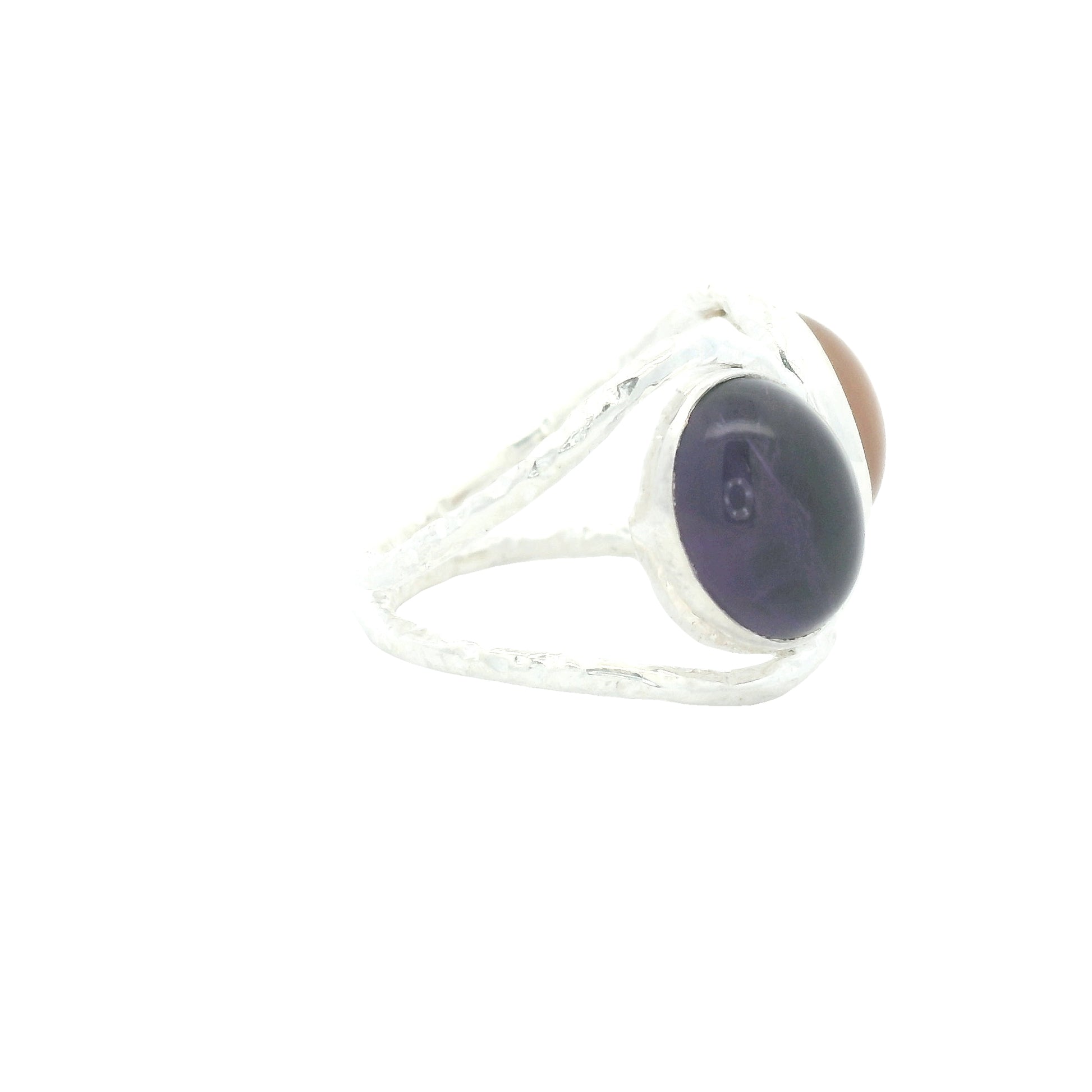 Add a touch of elegance to your collection with this stunning Ring featuring genuine Amethyst & Moonstone set in solid Sterling Silver. With a comfortable fit and eye catching sparkle, it's perfect for both daily wear and special occasions.