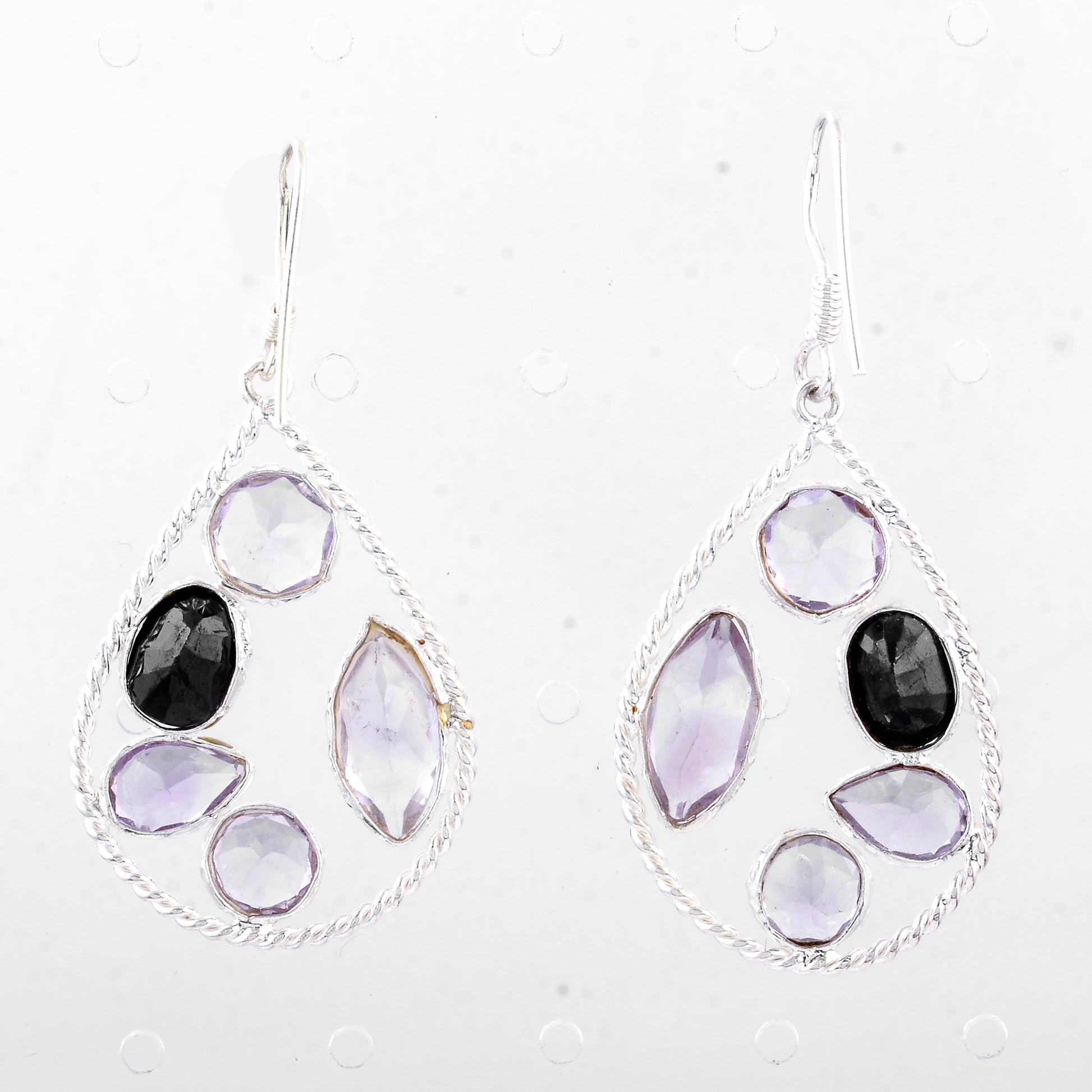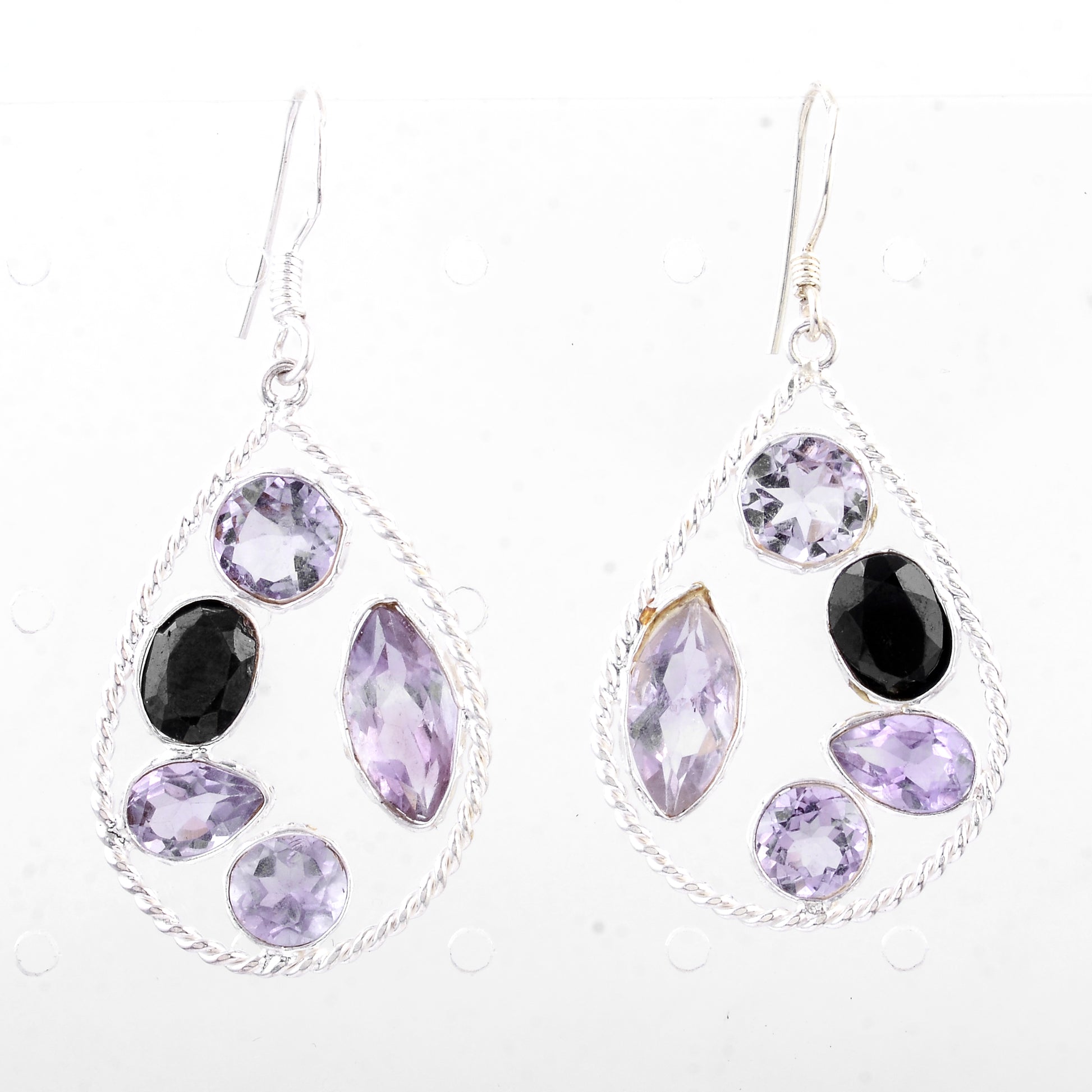 13.25 Ct Amethyst, Sapphire 925 Sterling Silver Earrings