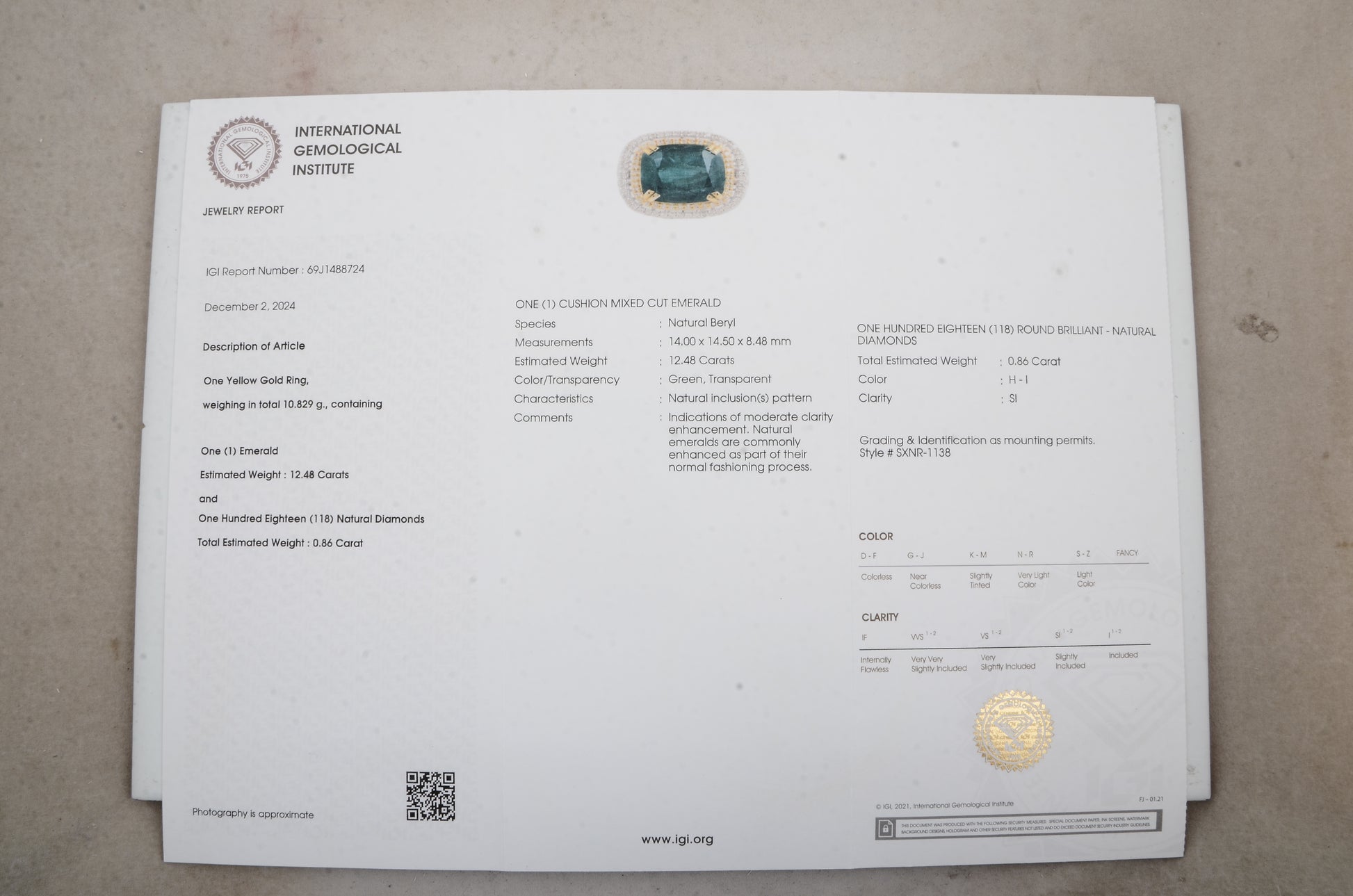 - Lab Name: International Gemological Institute (IGI)