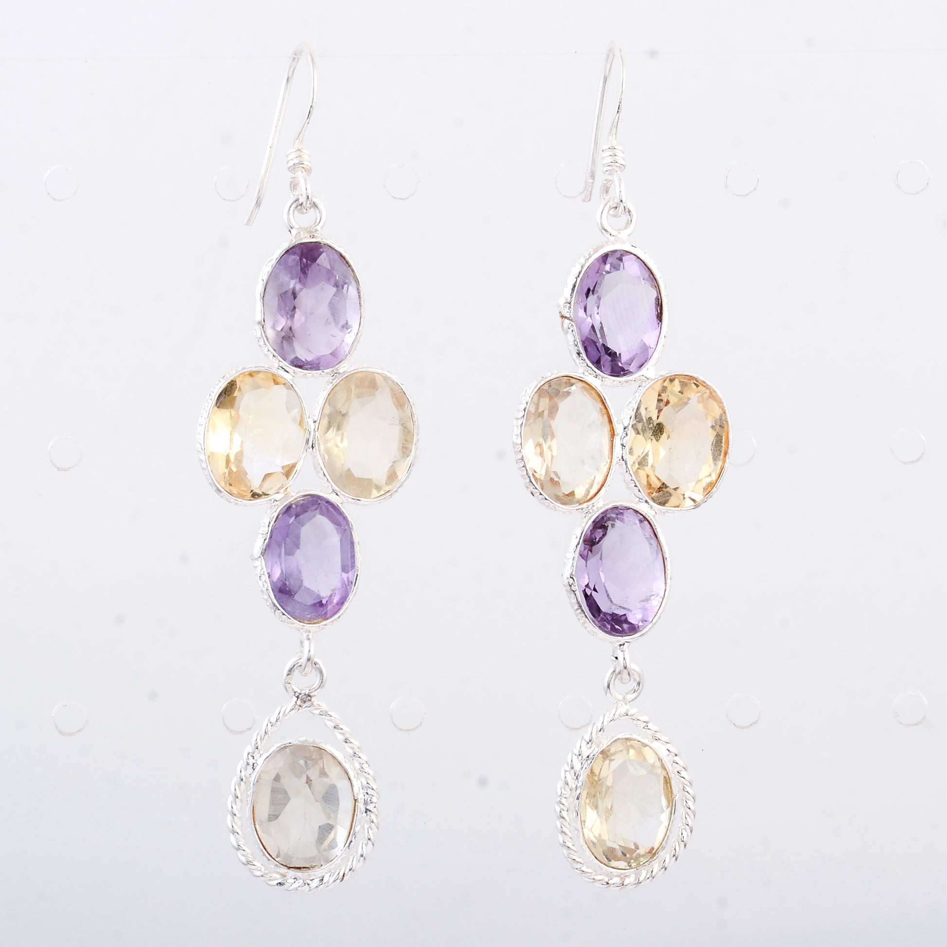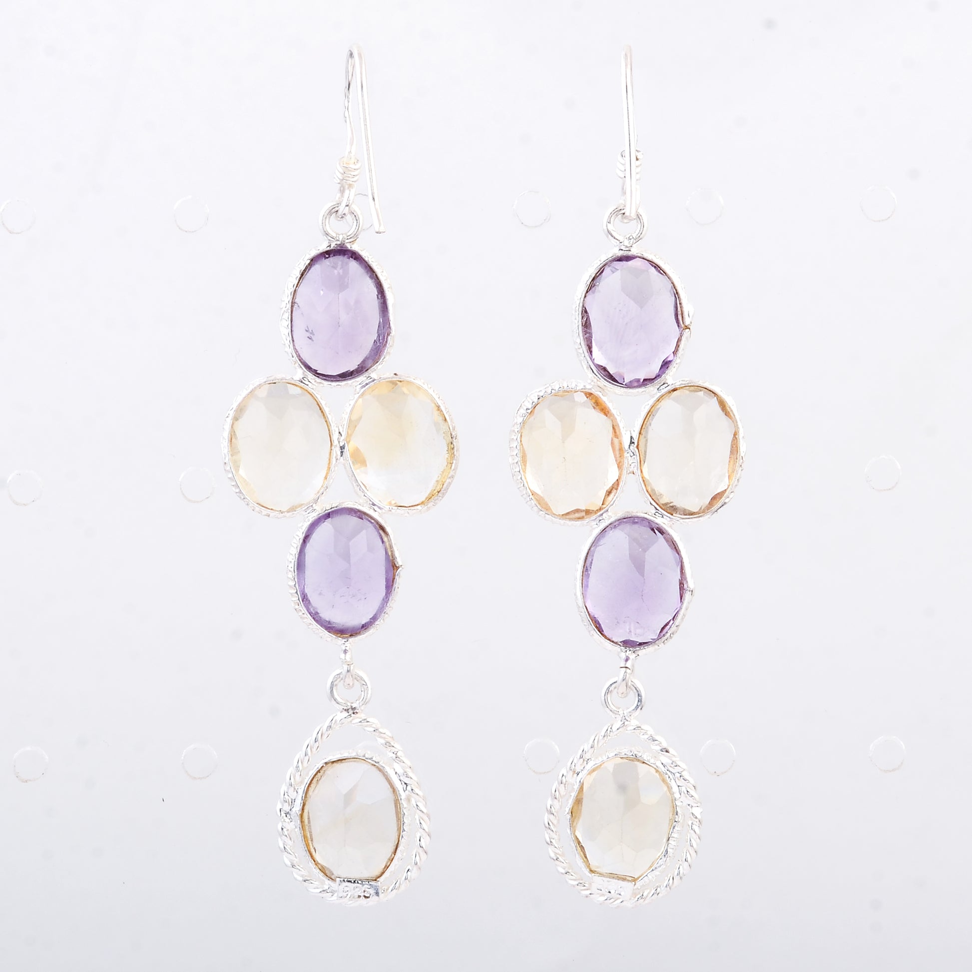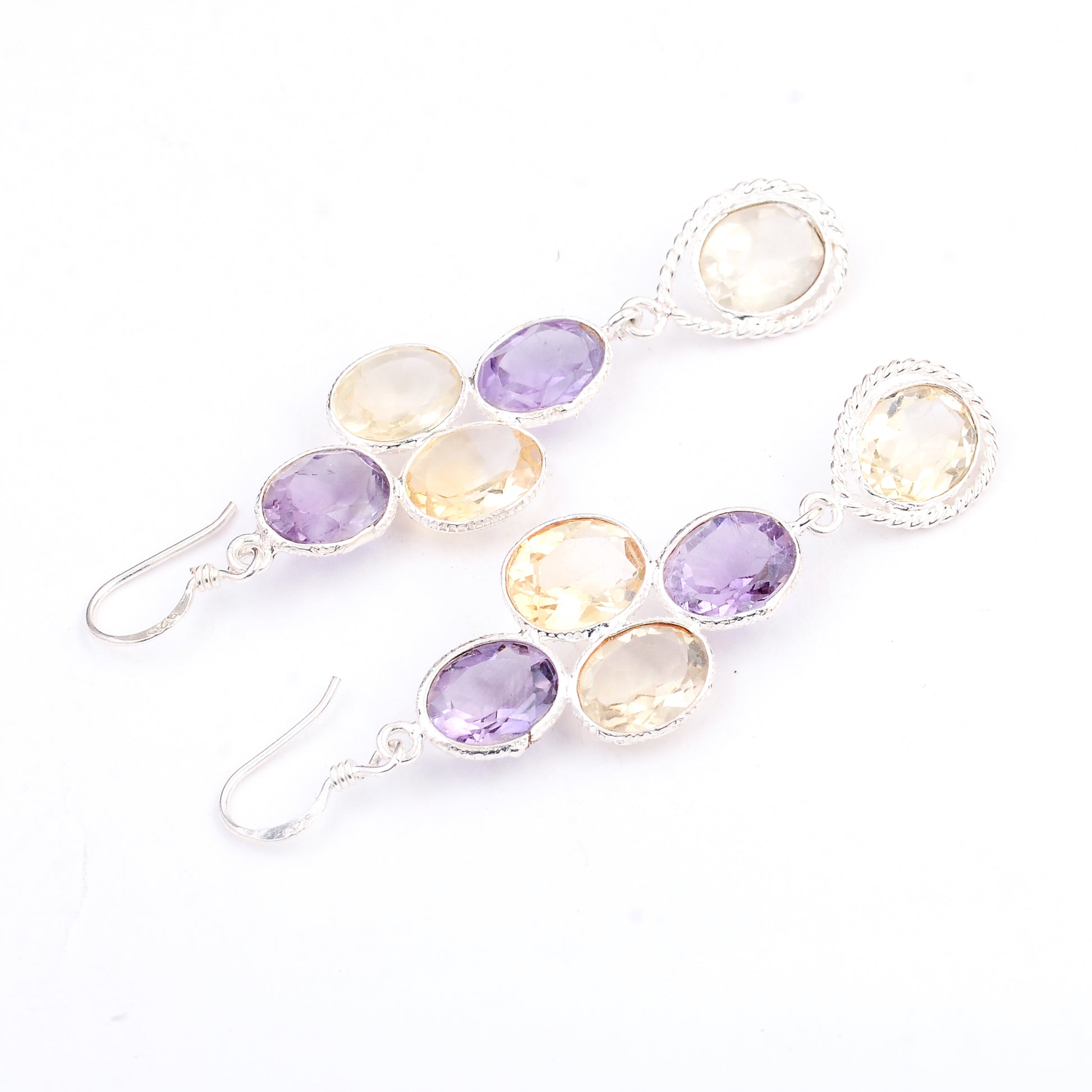 13.80 Ct Amethyst, Citrine 925 Sterling Silver Earrings