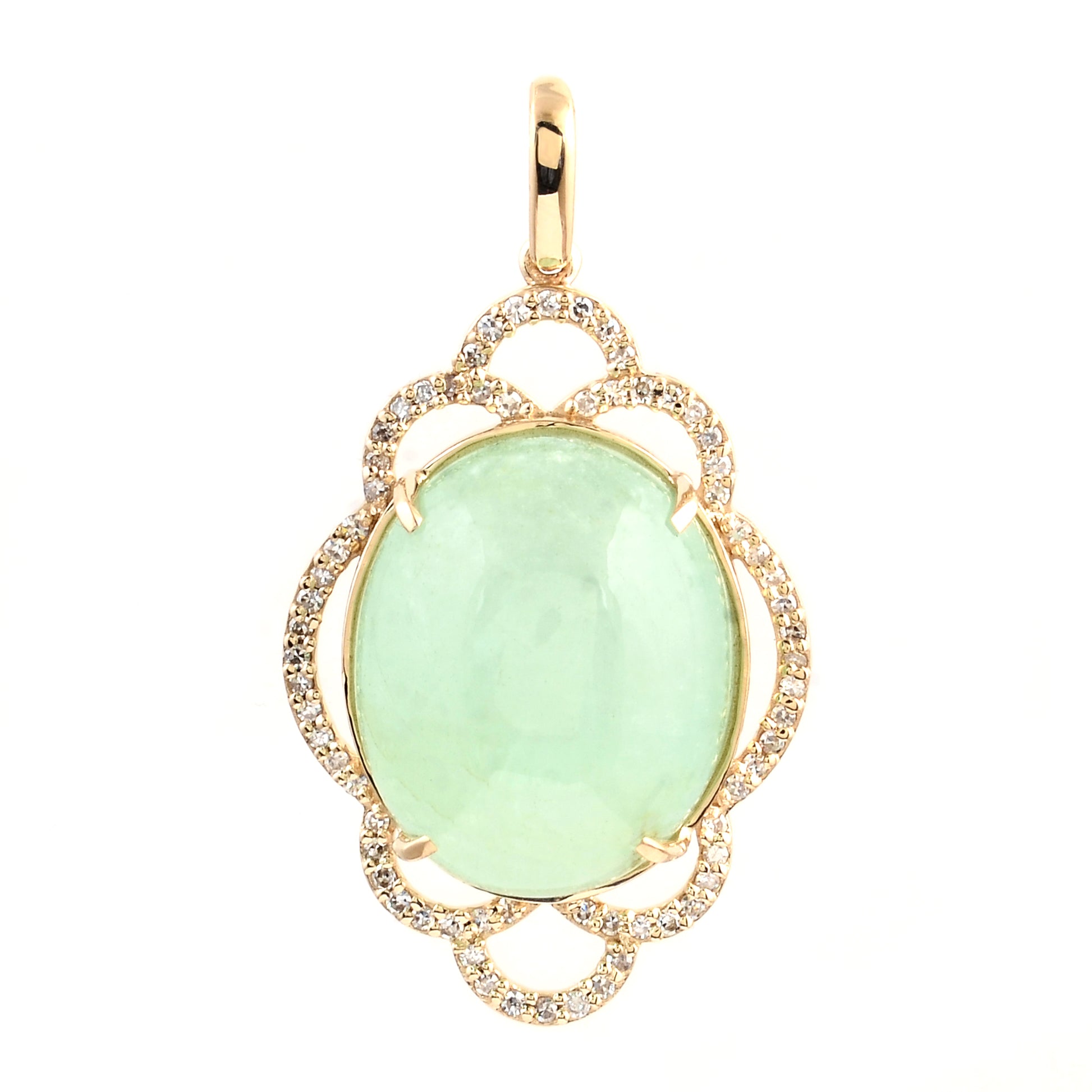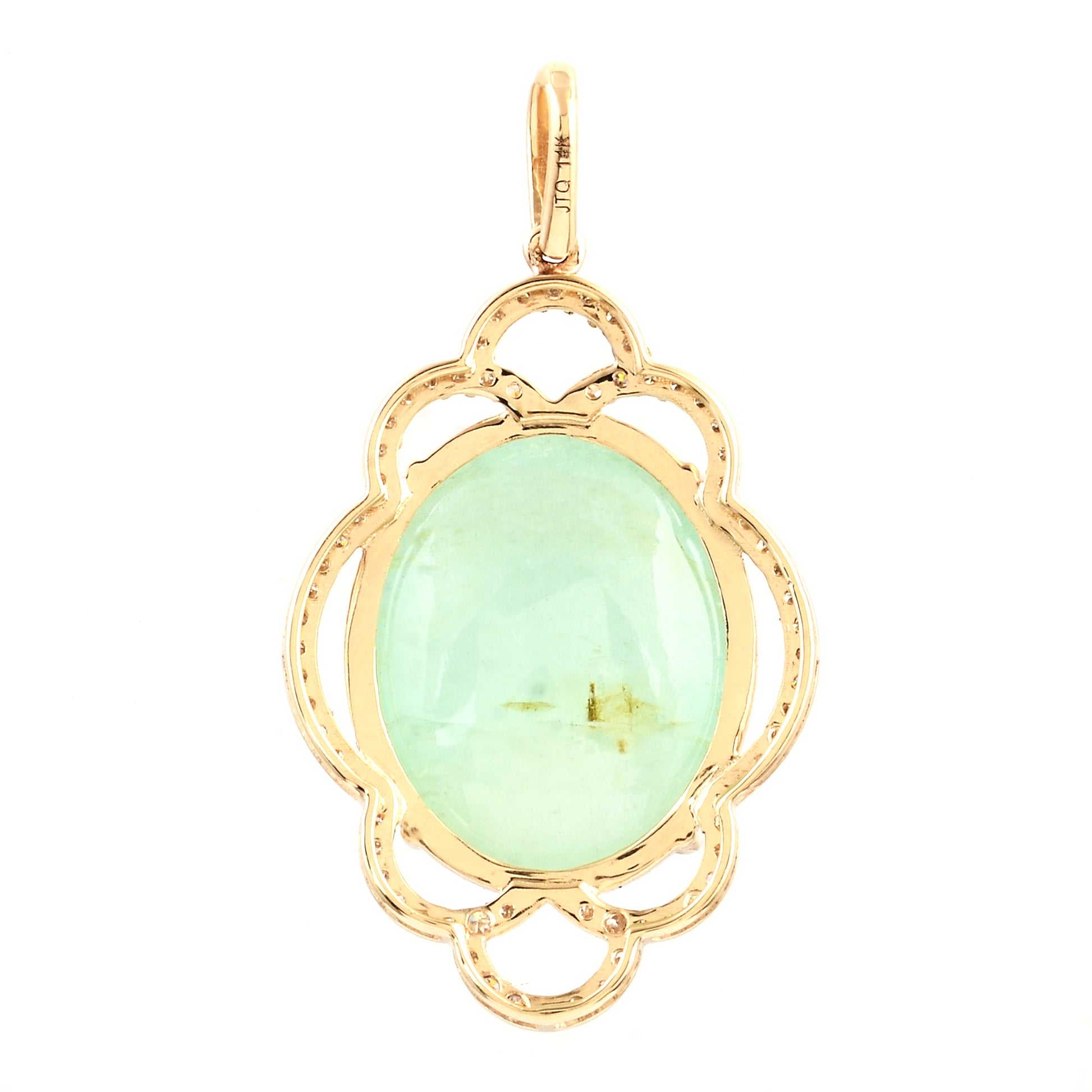14.13 Ct Oval Cabochon Natural Beryl Emerald 14K Gold Pendant