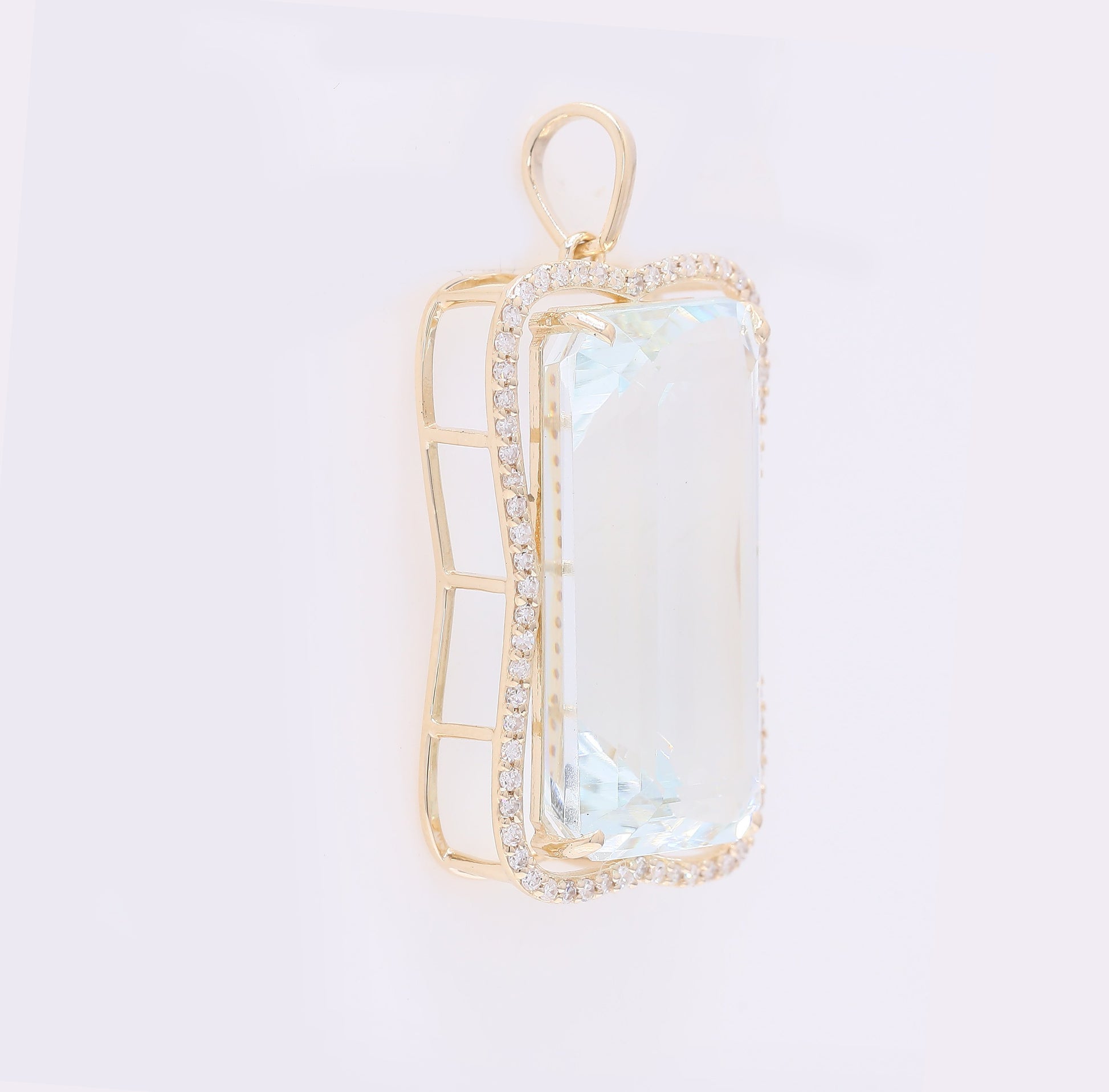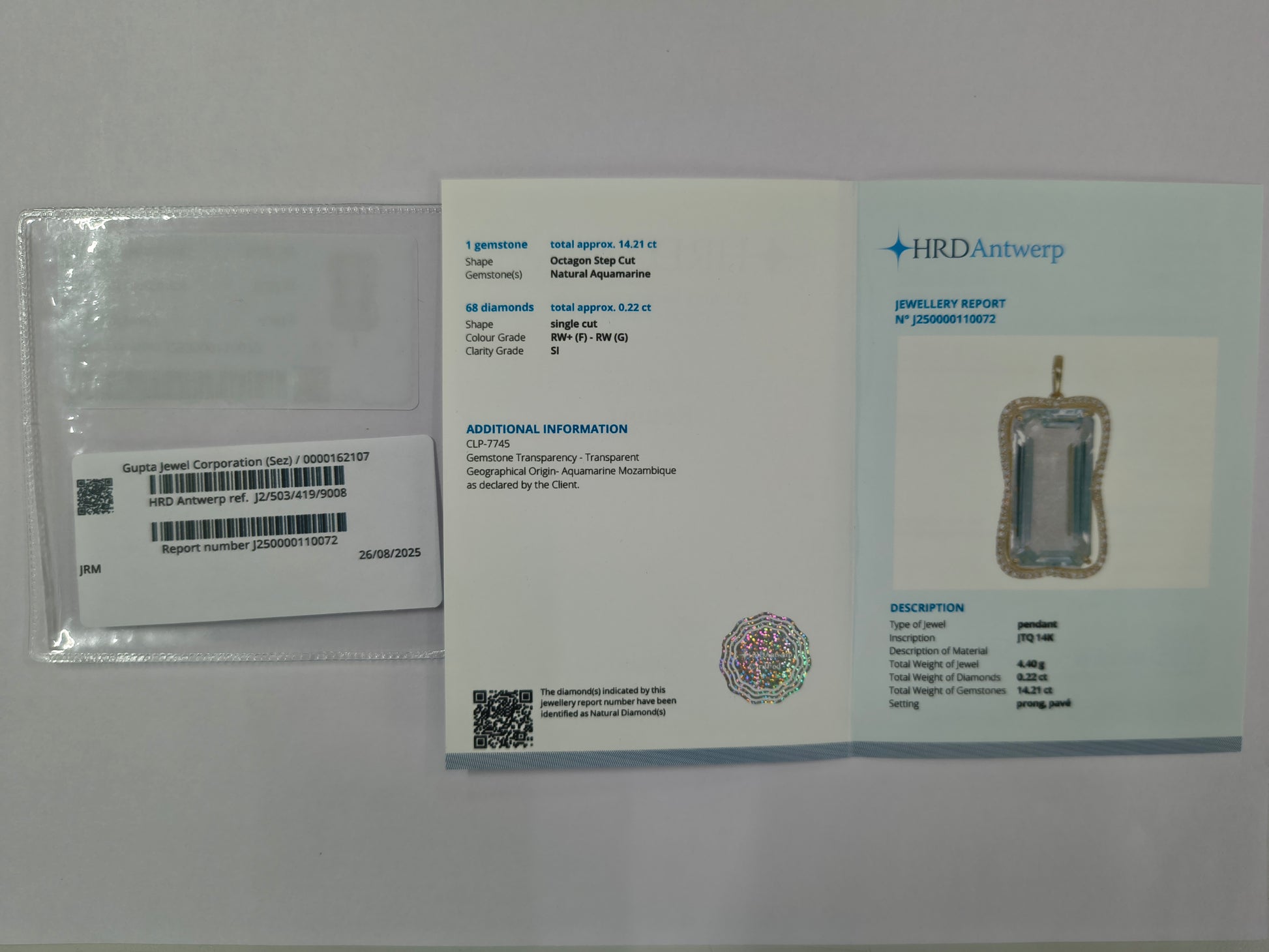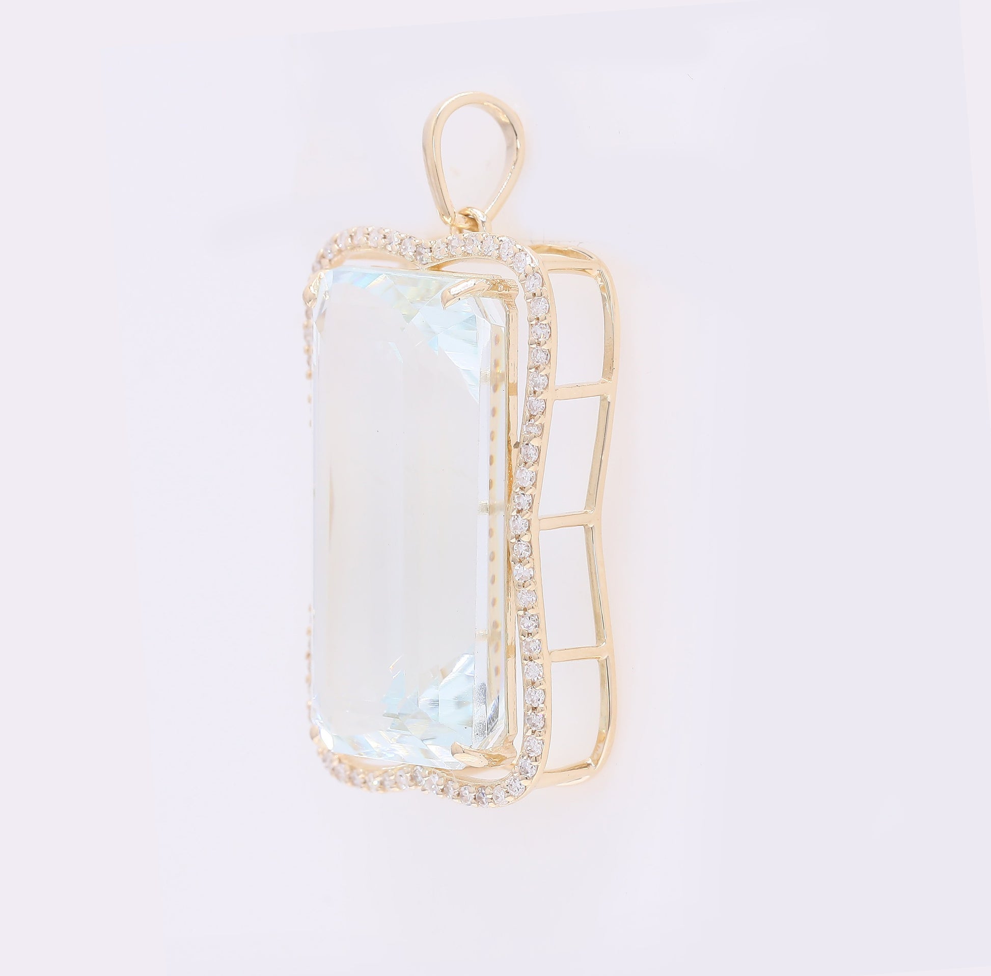 14.43 Ct Octagon Step Cut Natural Aquamarine 14K Gold Pendant