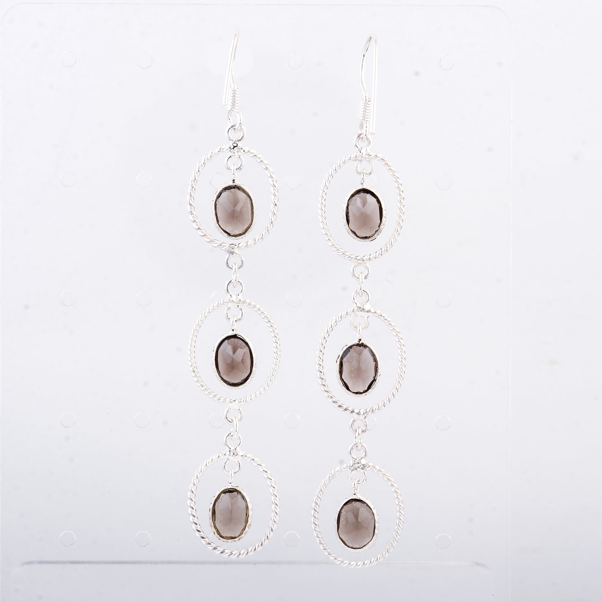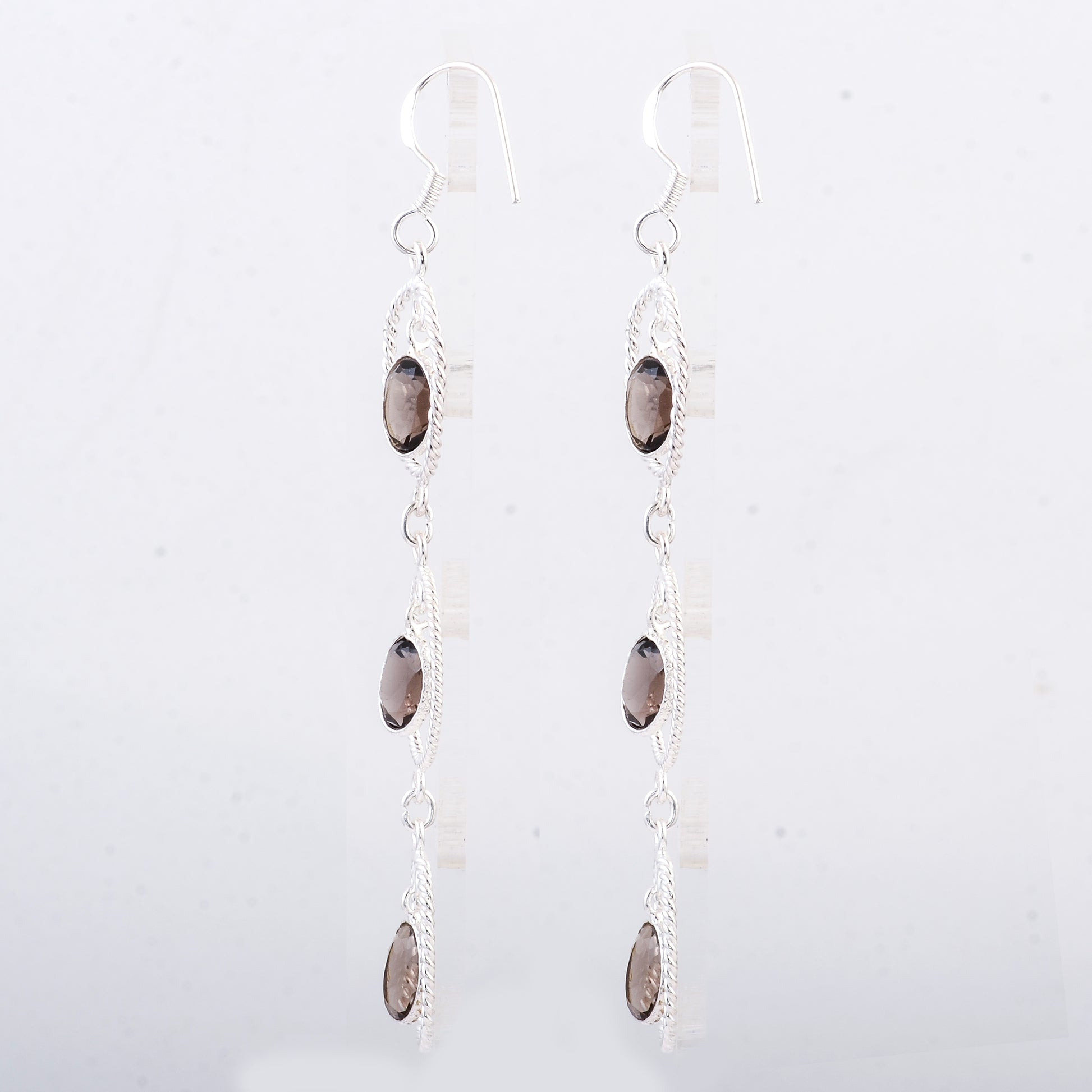 14.65 Ct Smoky Quartz 925 Sterling Silver Earrings