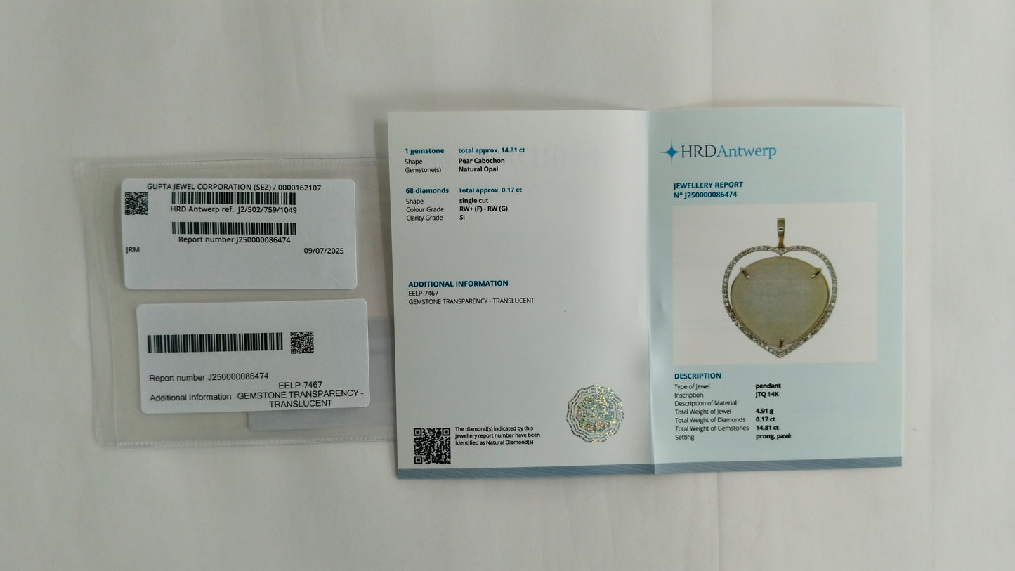 14.98 Total Carat Natural Opal 14K Gold Pendant