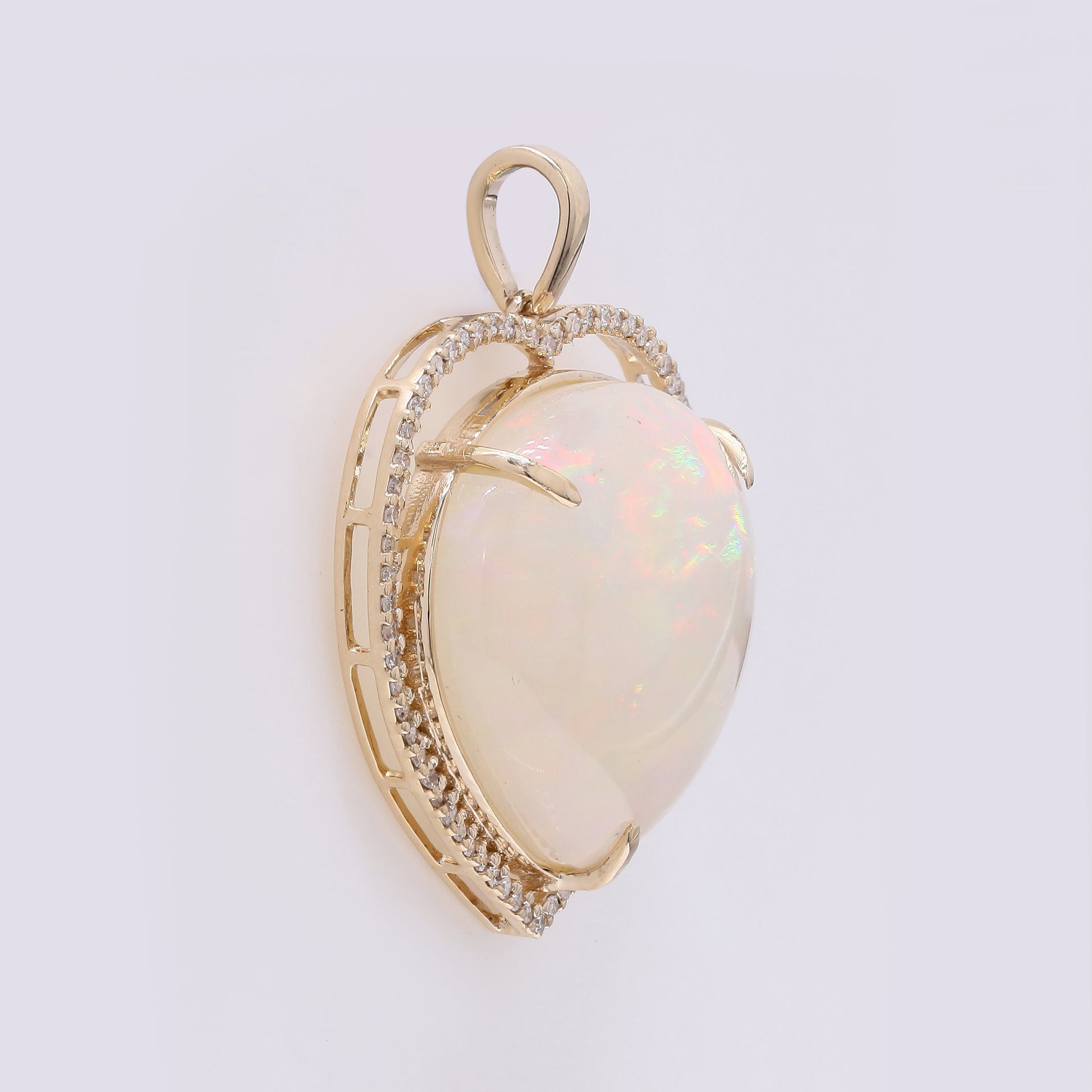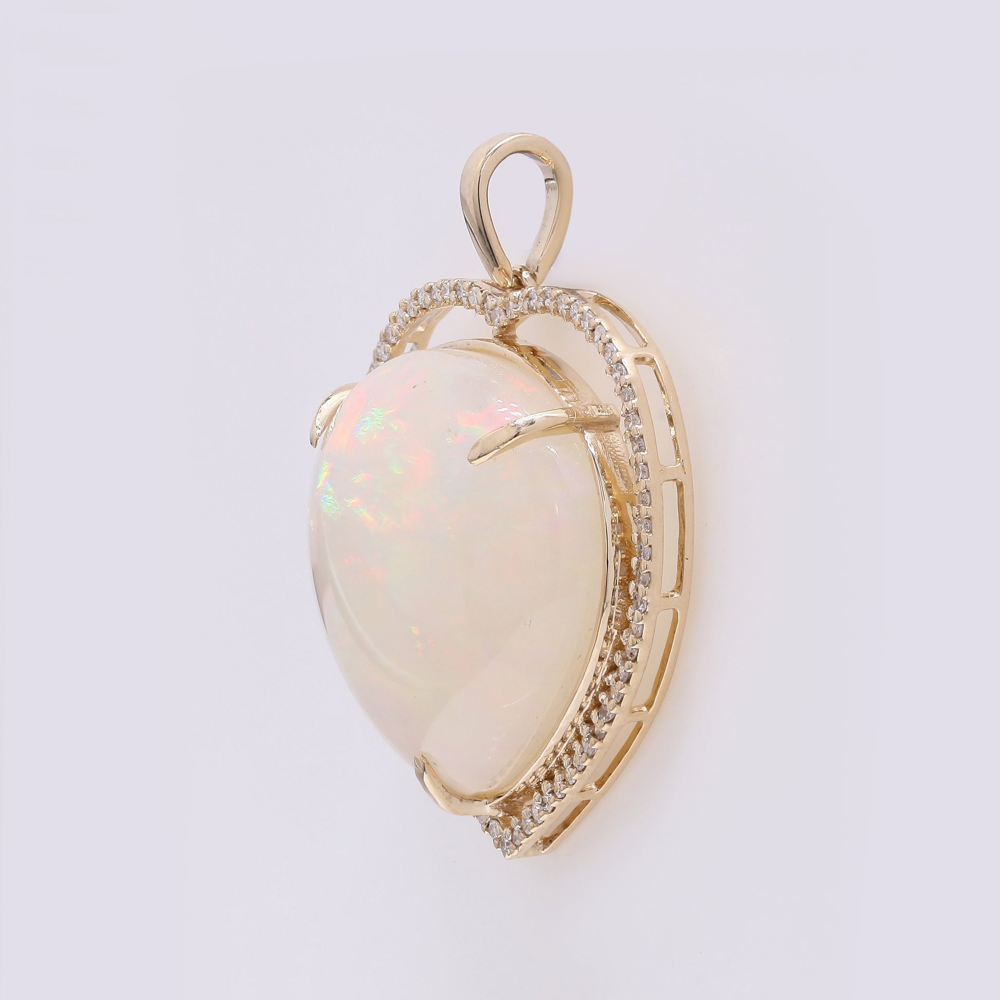 14.98 Ct Pear Cabochon Natural Opal 14K Gold Pendant