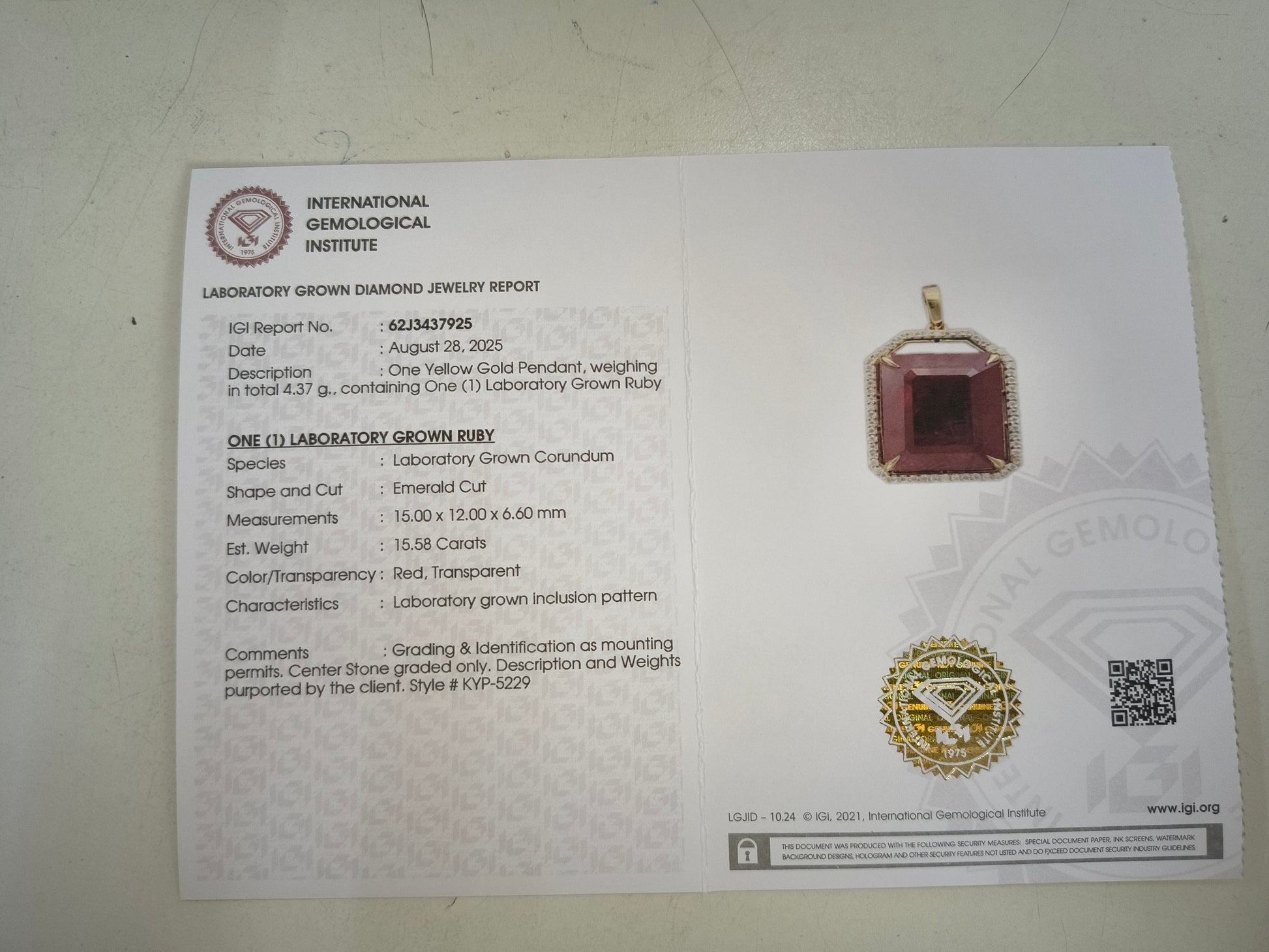 15.77 Total Carat Lab Grown Ruby 14K Gold Pendant