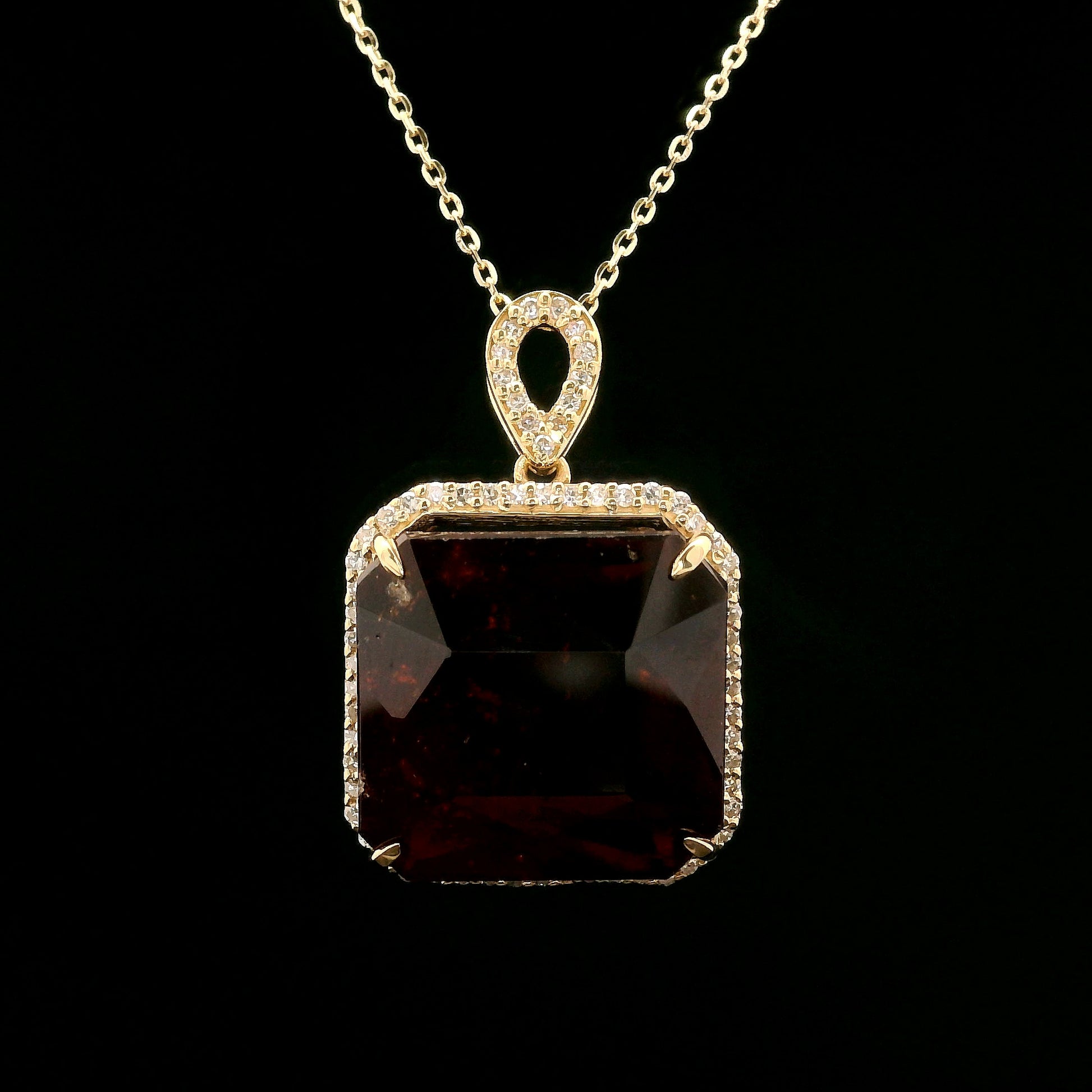 15.86 Ct Octagon Hessonite 14K Gold Pendant