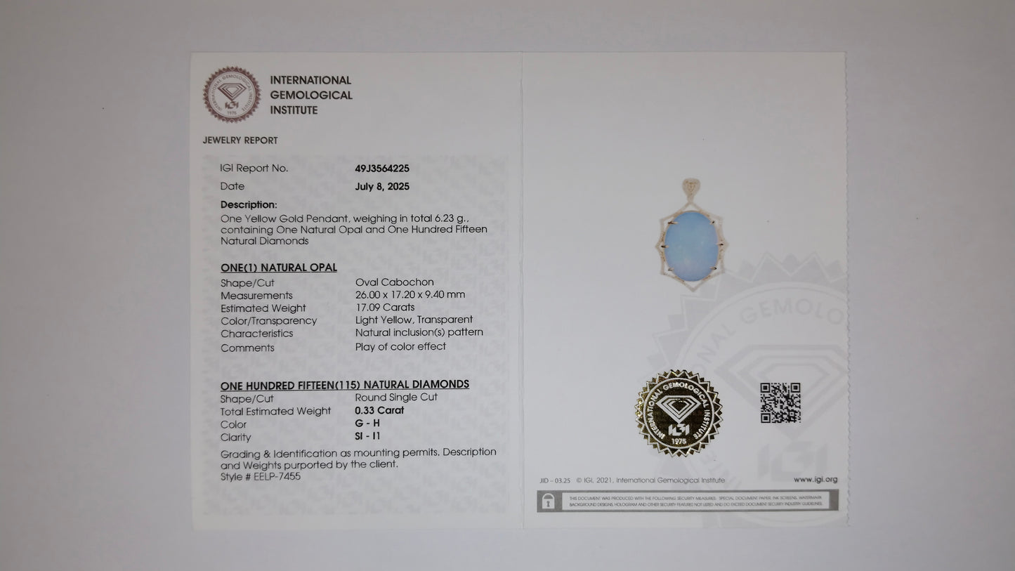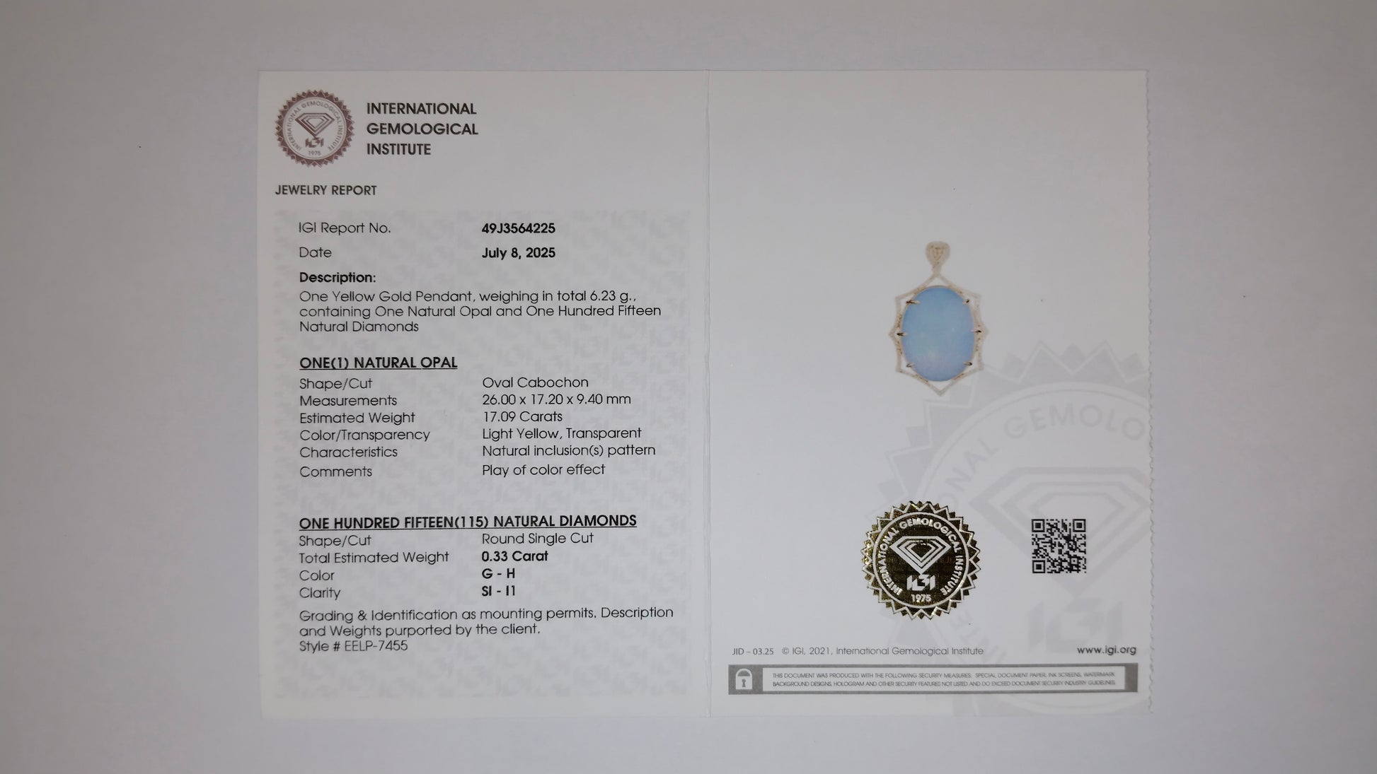 17.42 Total Carat Natural Opal 14K Gold Pendant