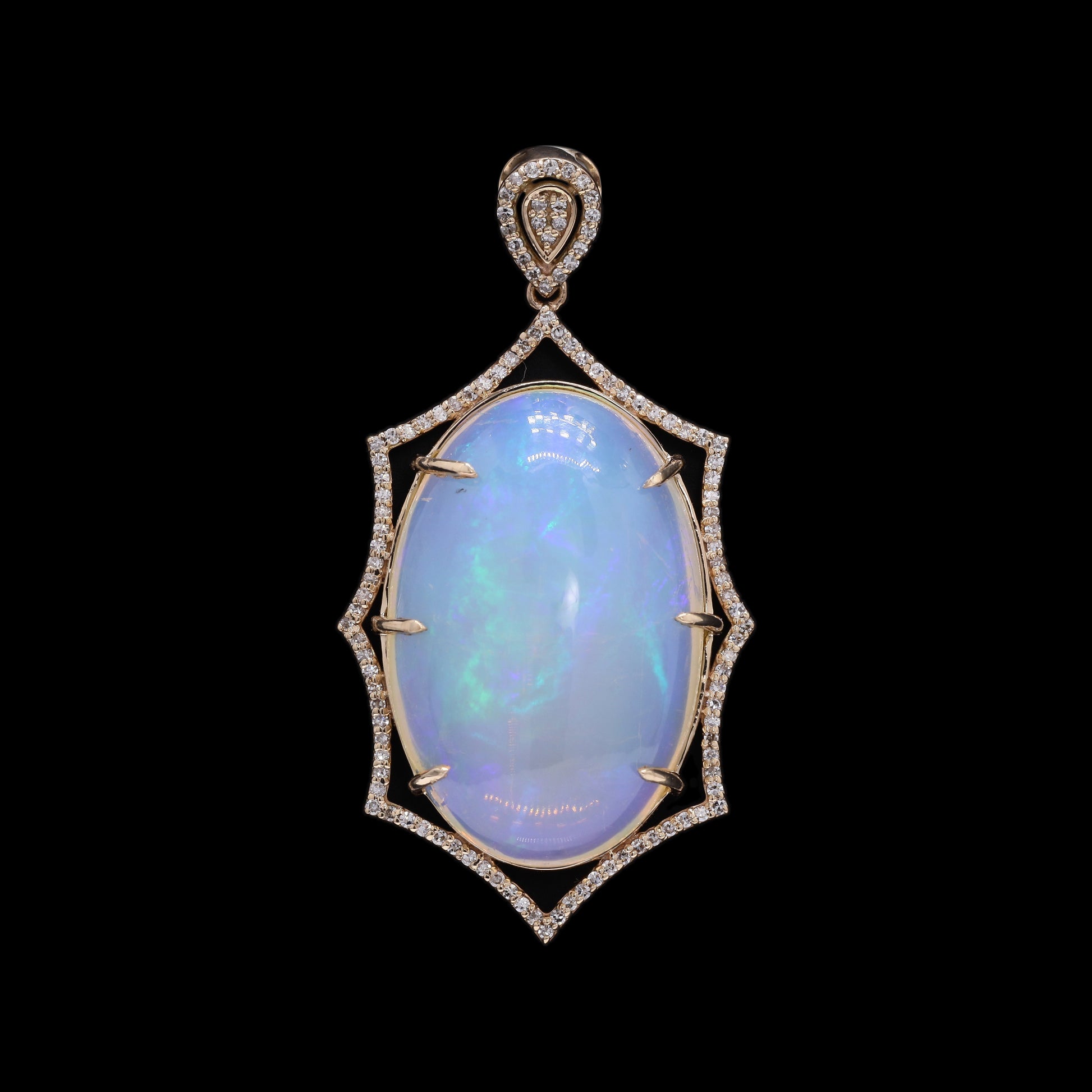 17.42 Ct Oval Cabochon Natural Opal 14K Gold Pendant