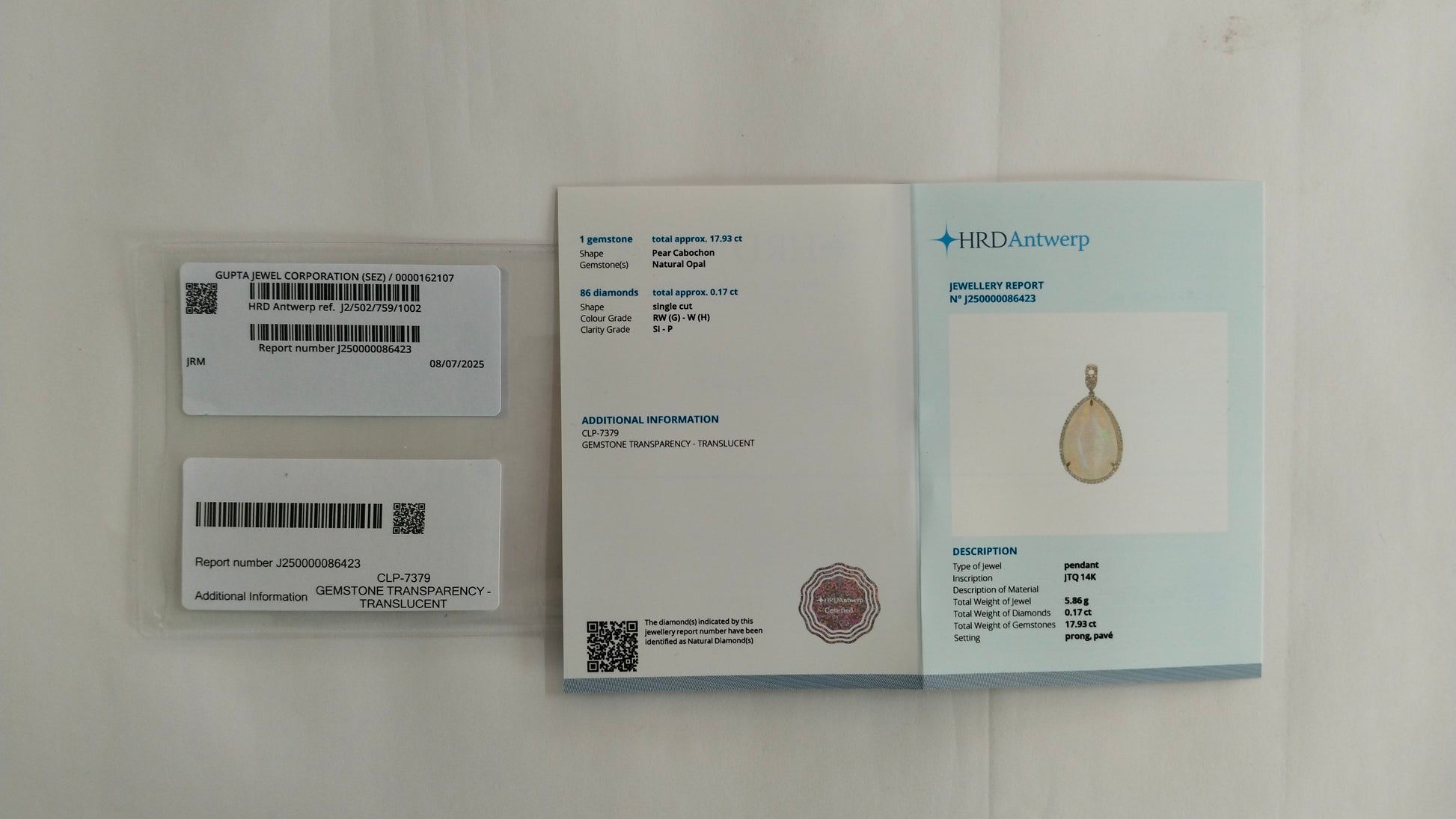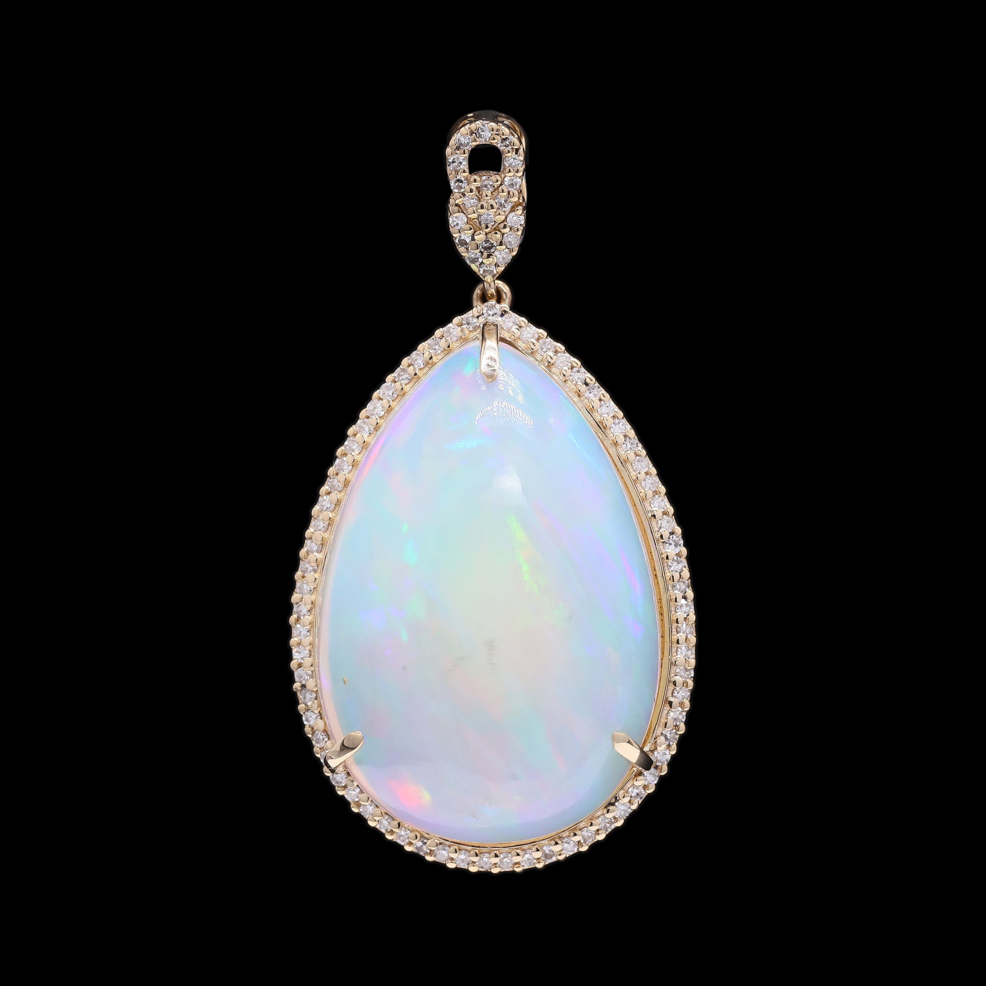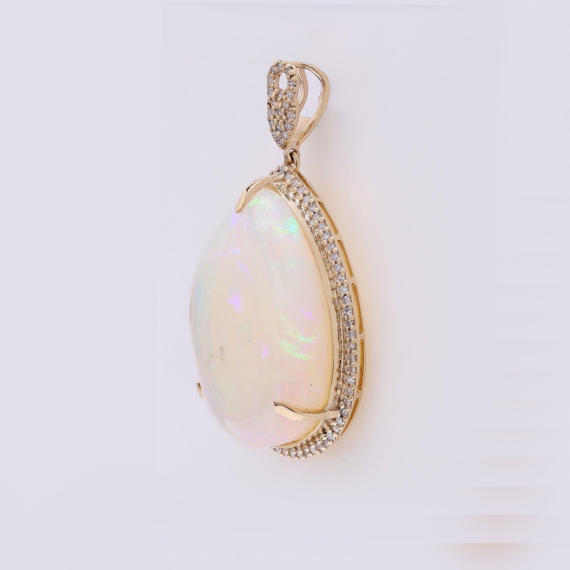 18.10 Ct Pear Cabochon Natural Opal 14K Gold Pendant