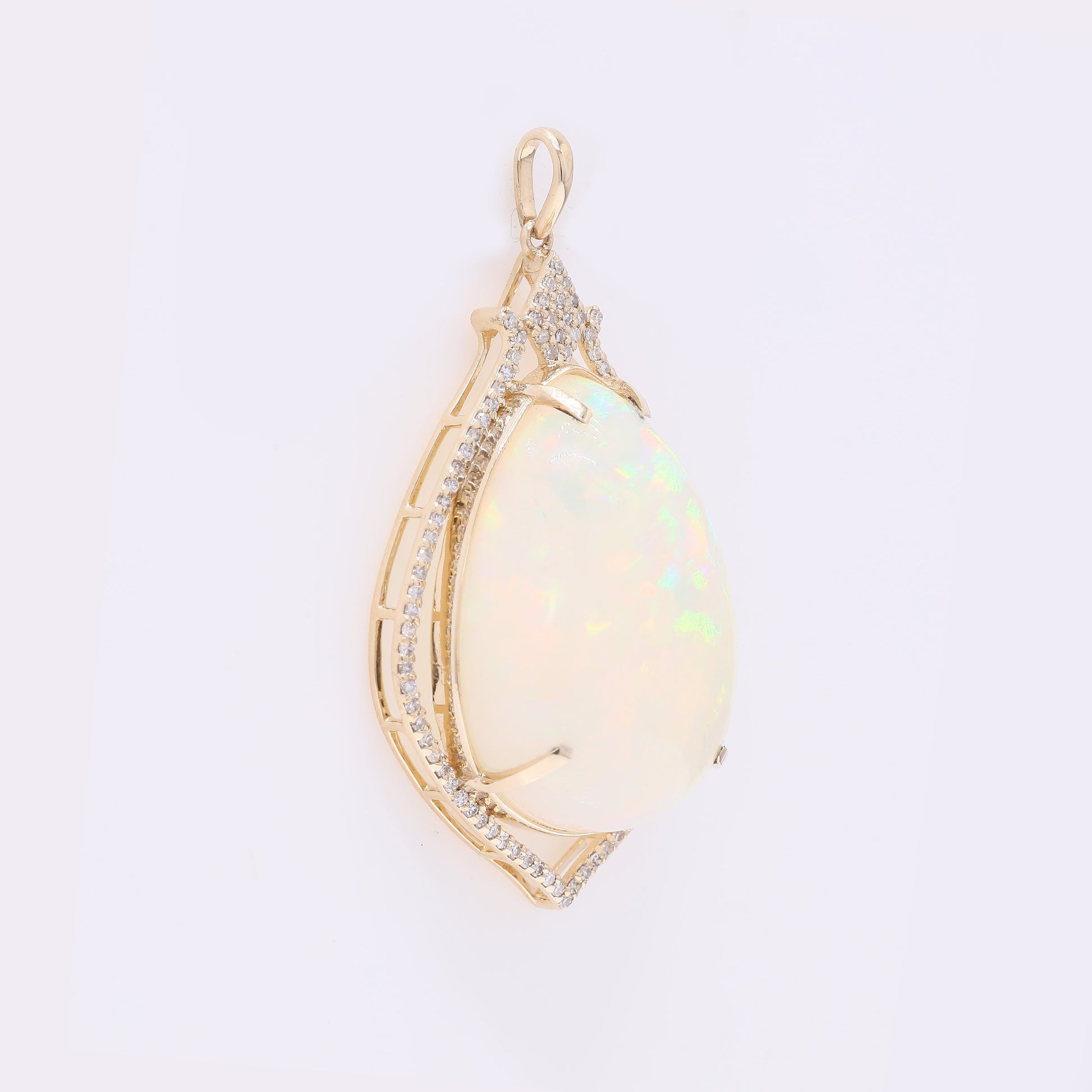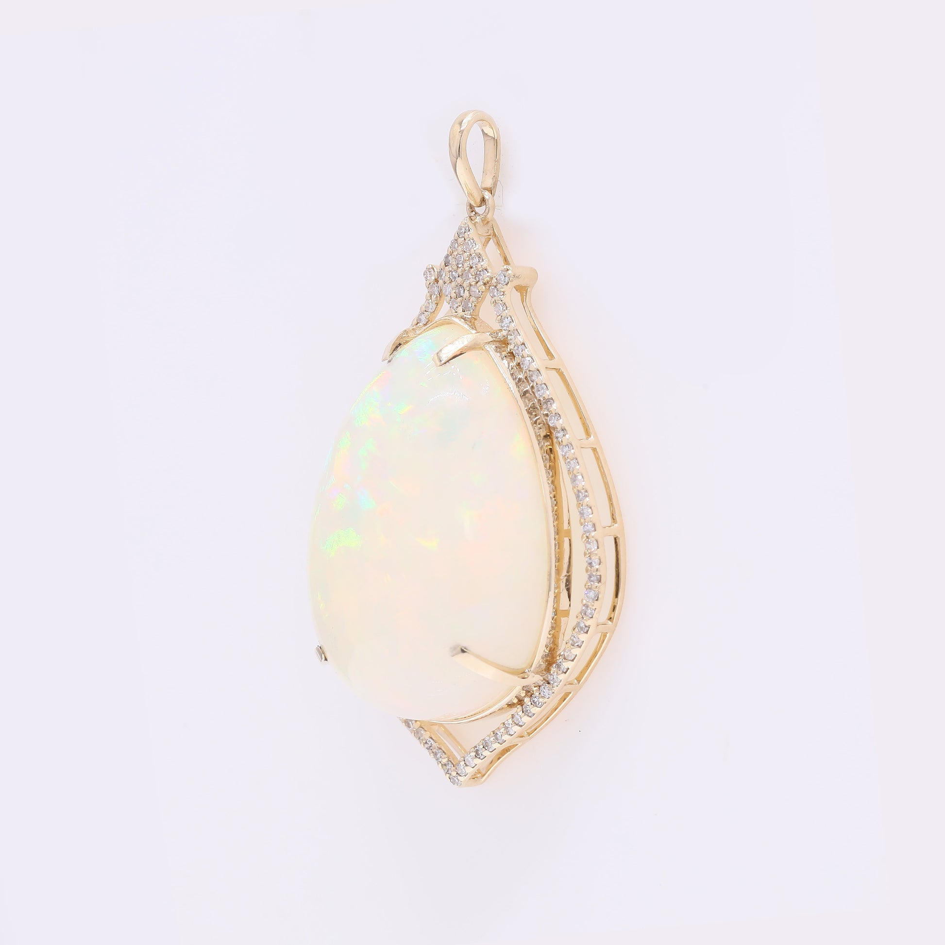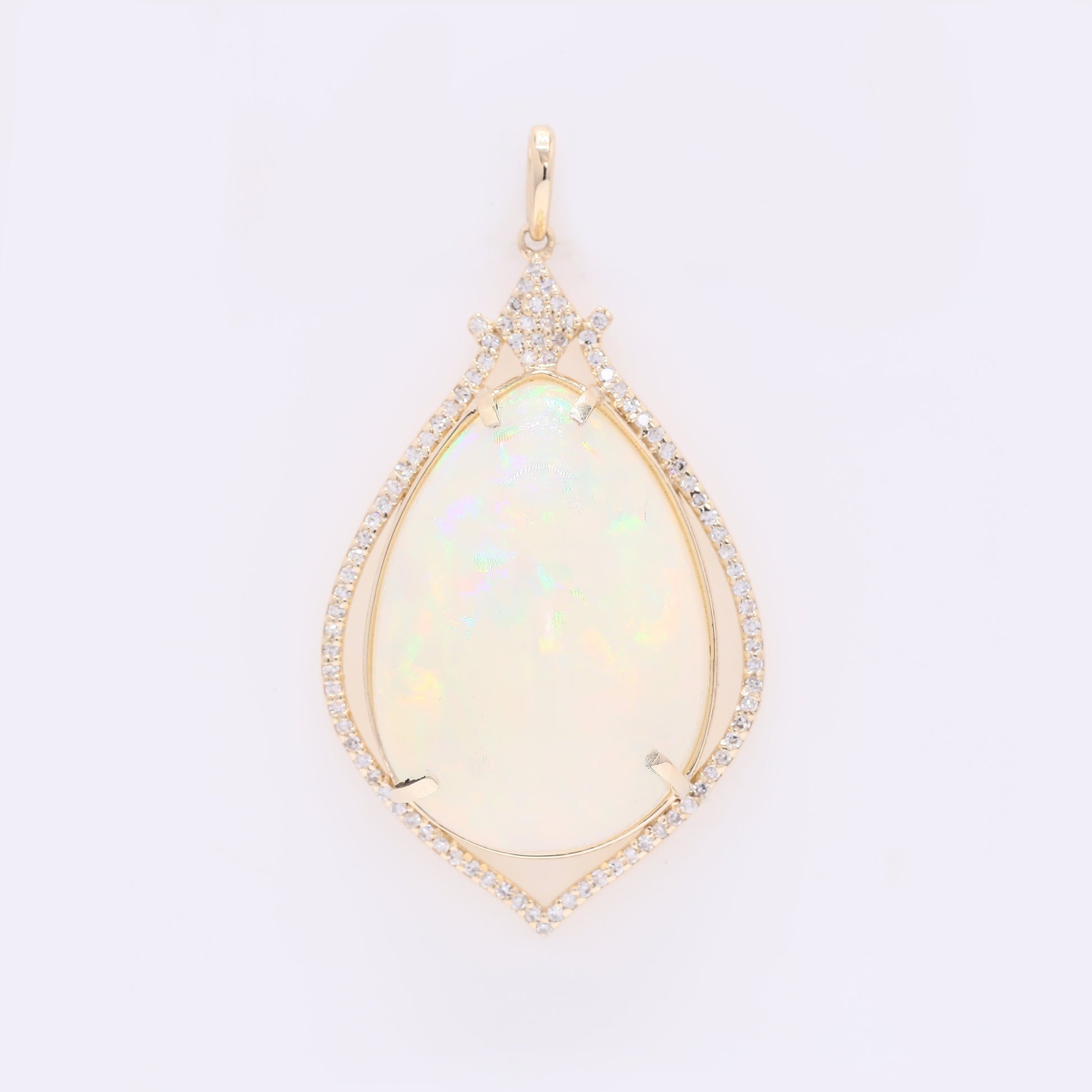 18.45 Ct Pear Cabochon Natural Opal 14K Gold Pendant