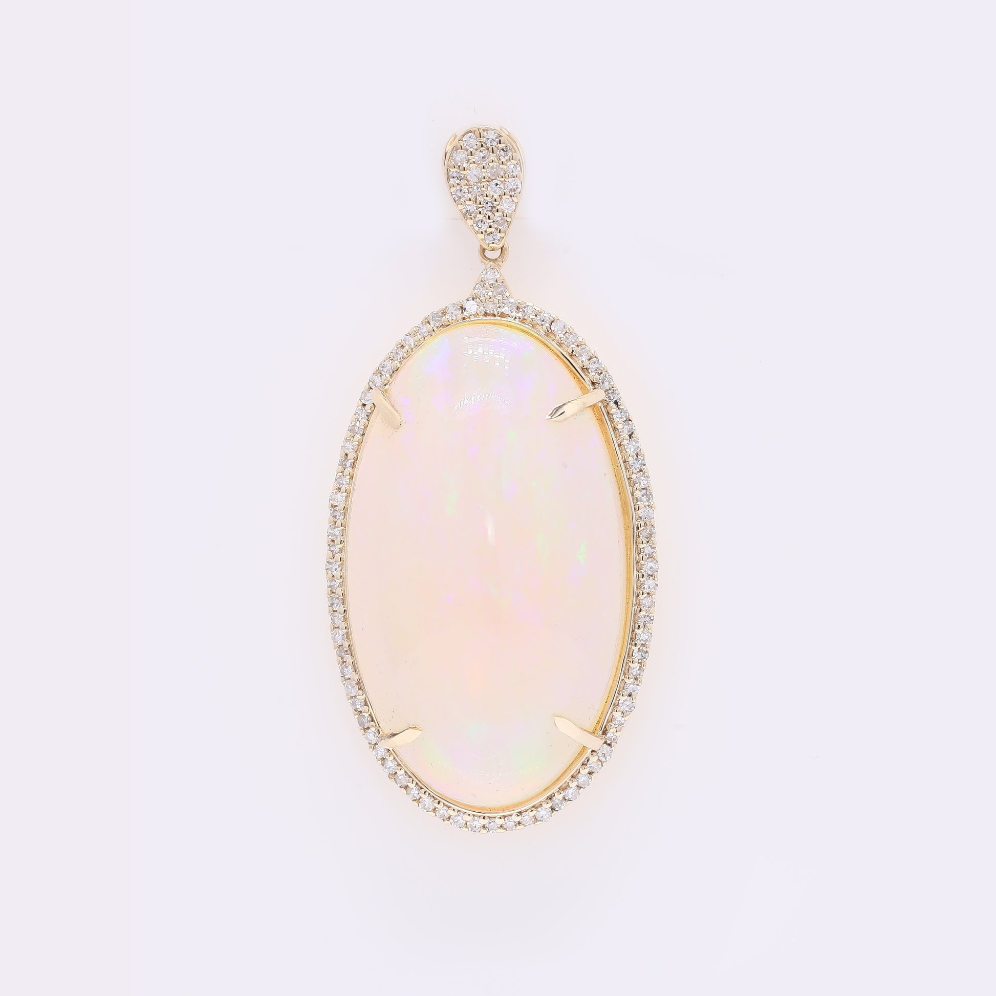 18.82 Ct Oval Cabochon Natural Opal 14K Gold Pendant