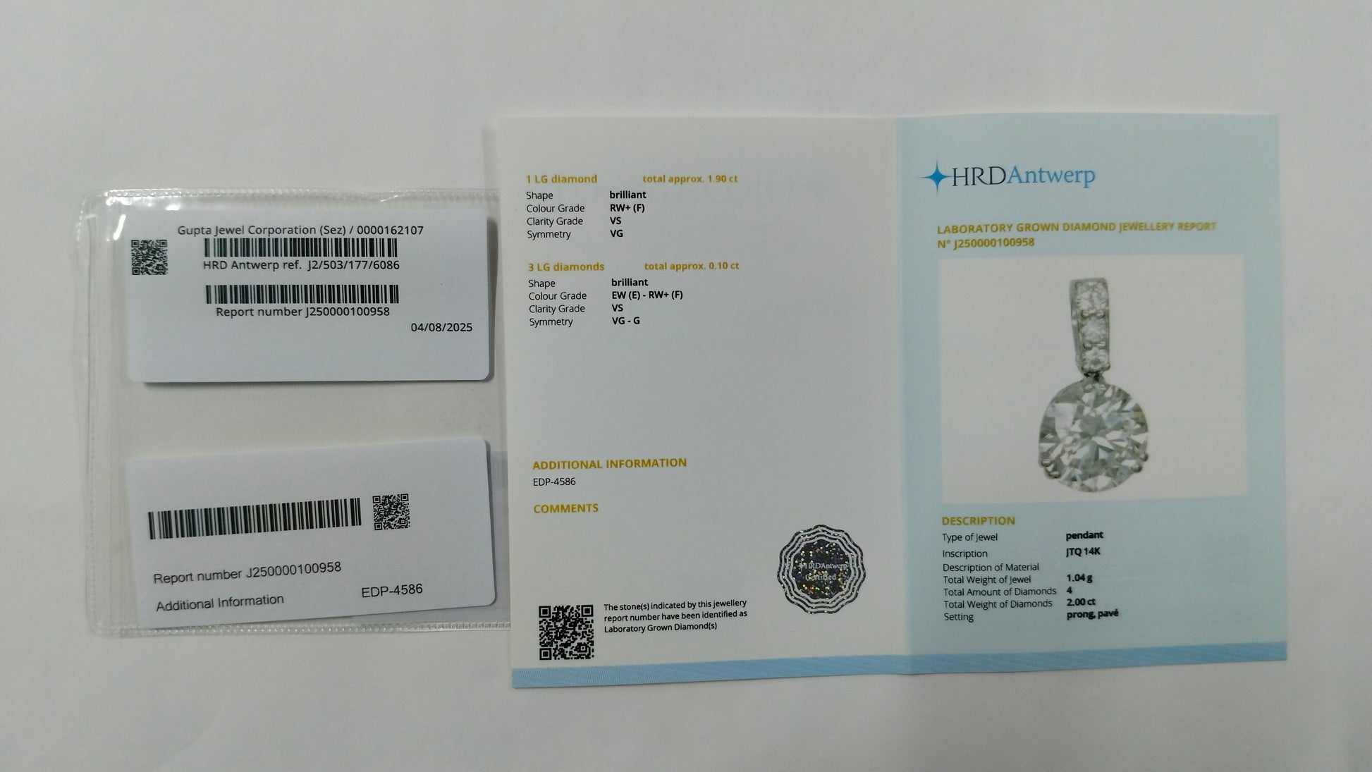 2.00-Carat Lab-Grown Diamond Round Cut Brilliant Pendant ? HRD Certified